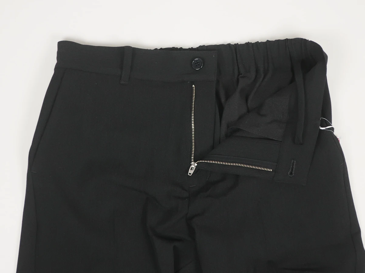 ウエストにはドローコードとゴムを内蔵しリラックス感のある仕様。カジュアルにもクリーンにも合わせやすい一本です。