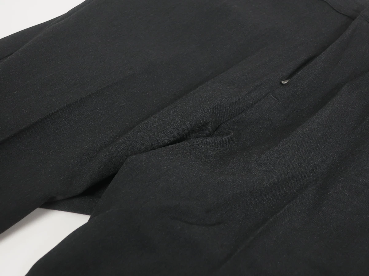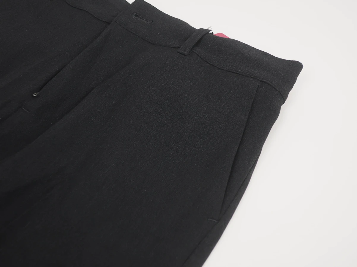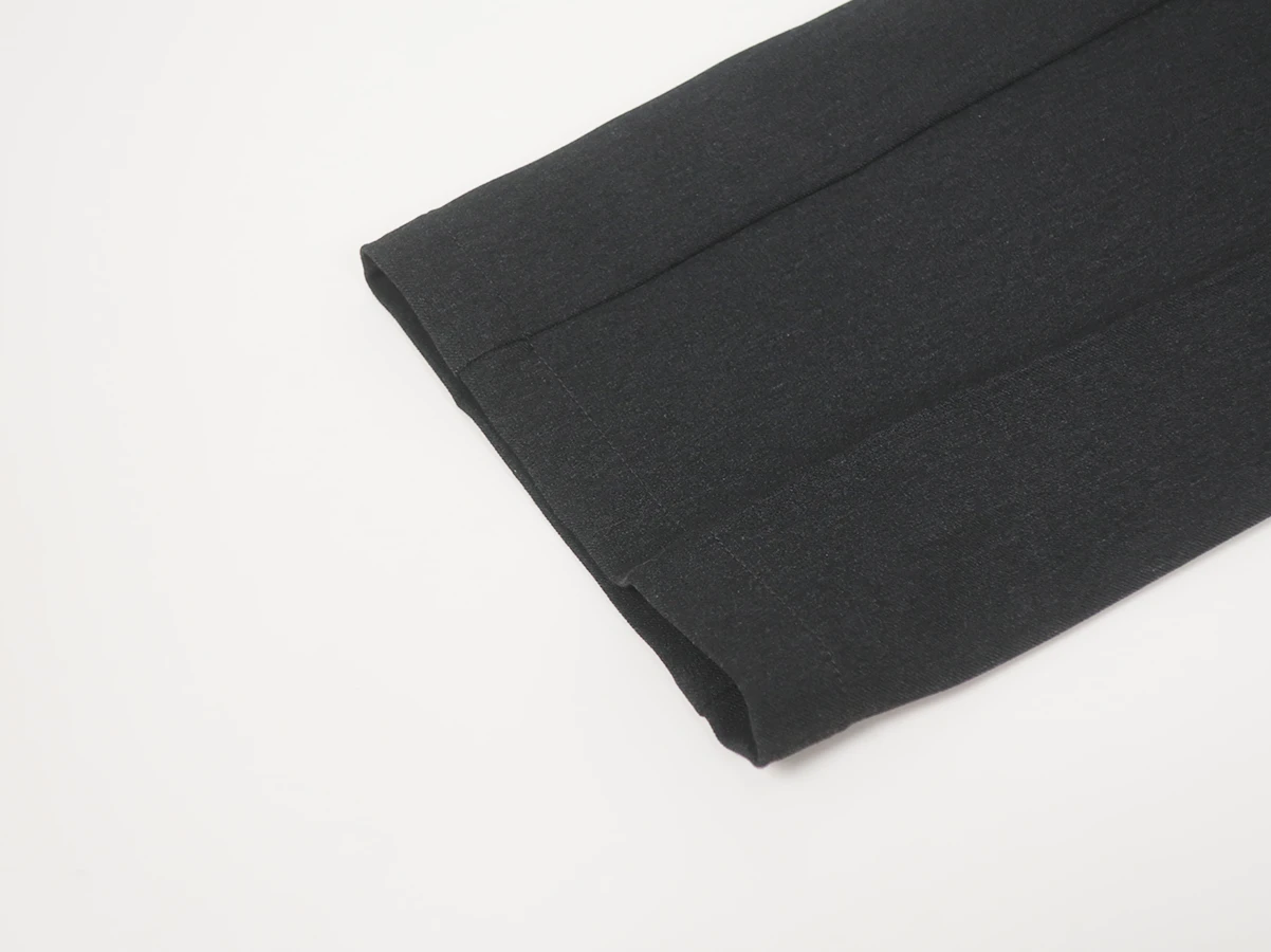 ポリエステル・レーヨン・ポリウレタンをバランスよくブレンドした生地は滑らかな肌触りでシーズンを問わず快適な穿き心地を提供します。