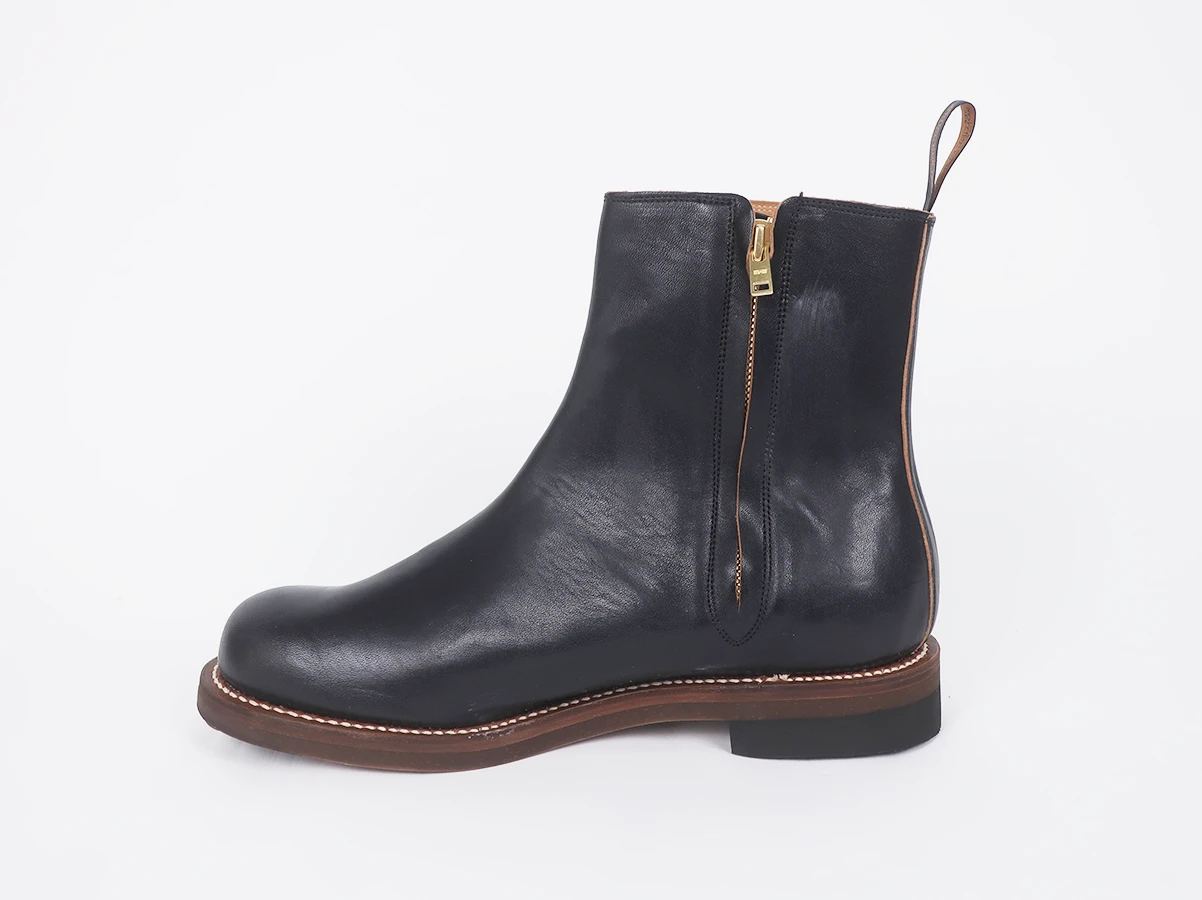CASPERは本物志向の強いブーツファンが認めた最初のサイドジップブーツとなりました。こちらはイタリアの老舗タンナーのホースフロントレザーを用いた一足です。クロムエクセルレザーに比べ光沢があり、茶芯で馬革特有の細かいシワが入るのが特徴です。