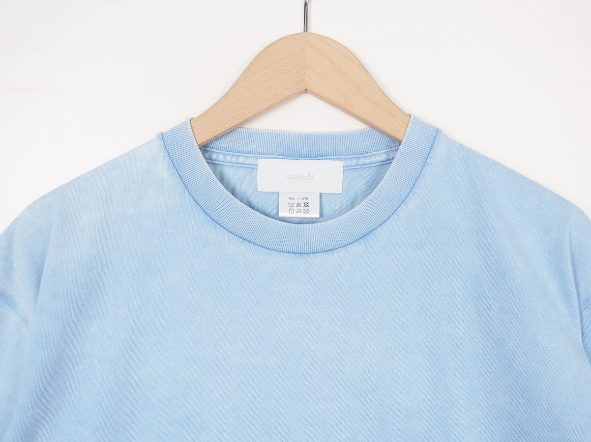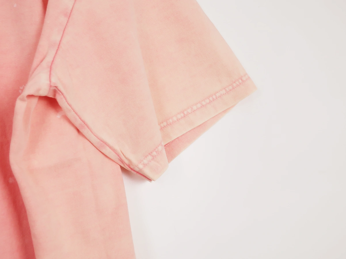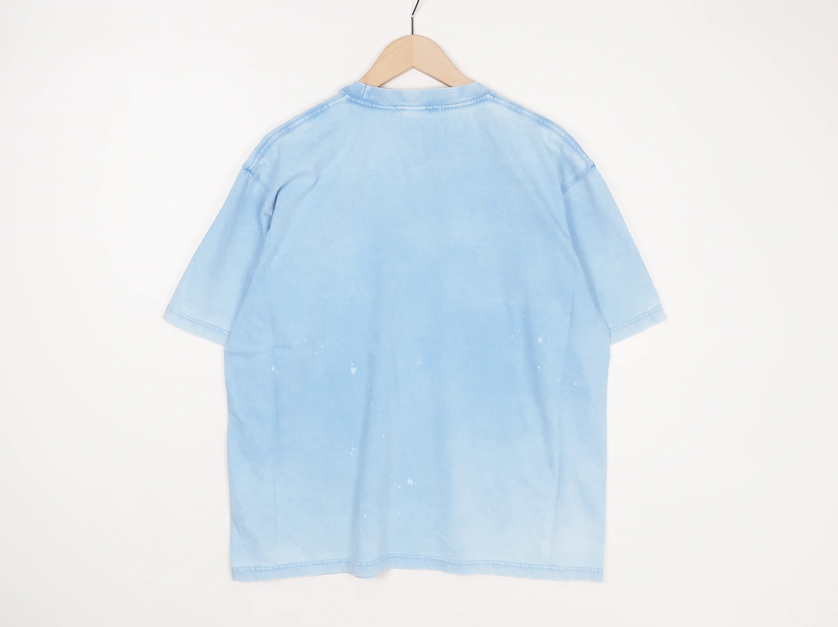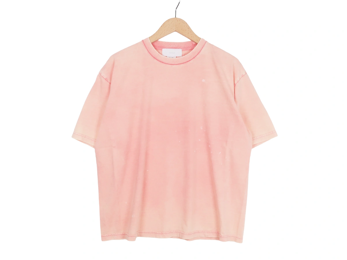 5.6ozのボックスシルエットTシャツ。洗い加工は、生地の凹凸部分のアタリを強調させ同時に脱色させる新しい加工技術。日焼けして着古したような激しい加工ながらも垢抜けた印象。