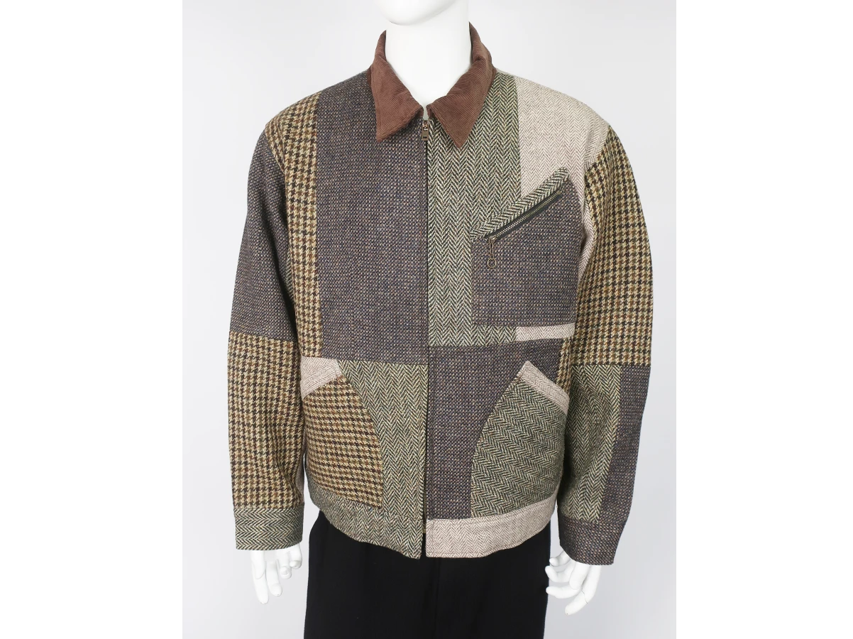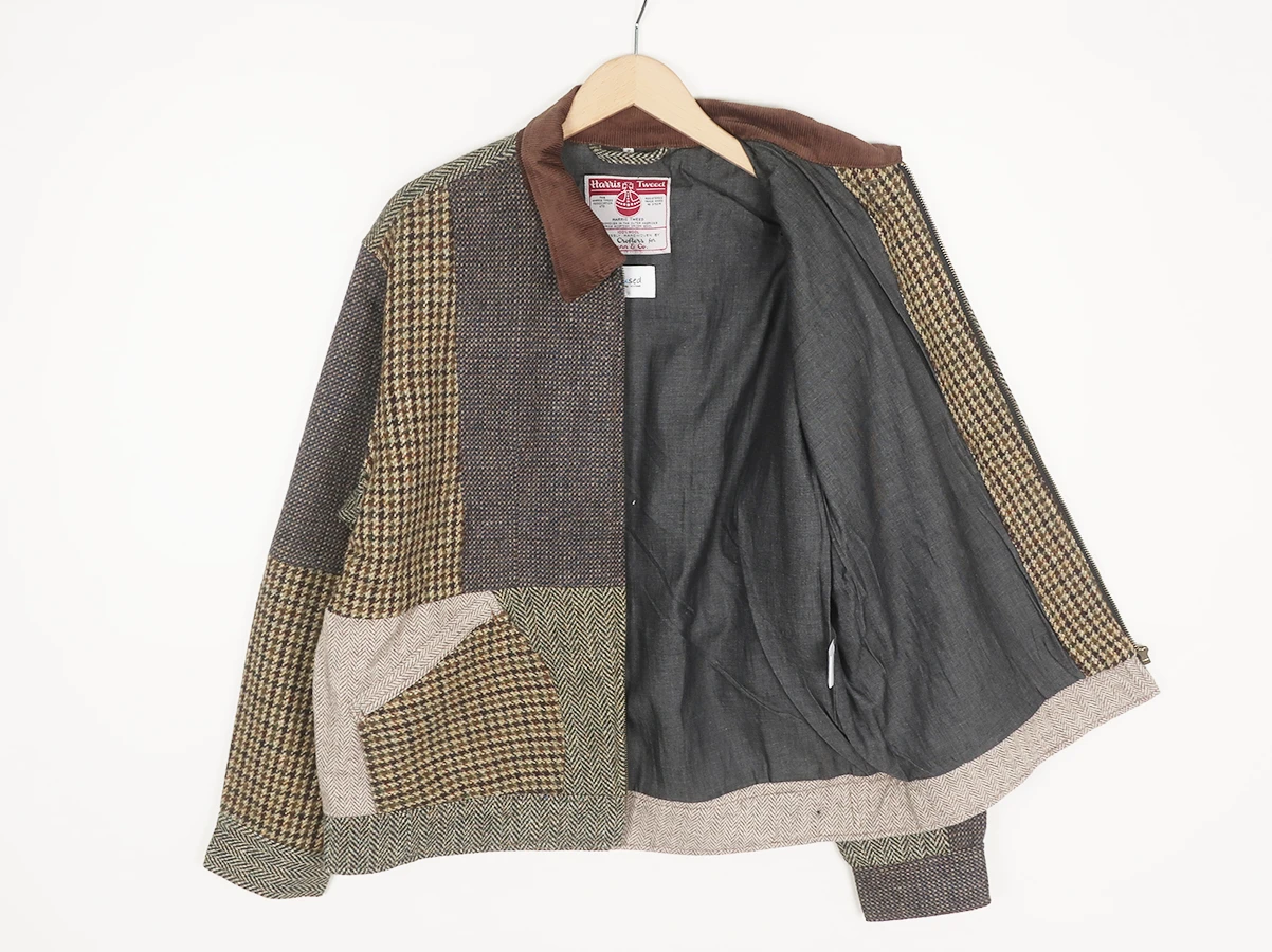 古着を再構築することで独自の魅力を生み出す「yoused」から届いたスポーツジャケット。ベースにはヴィンテージのハリスツイード生地を使用し、独特の風合いとクラシックな存在感をまとっています。伝統的な素材感を活かしつつも現代的なスポーツジャケットに仕上げられており、タウンユースからカジュアルシーンまで幅広く活躍する一着。