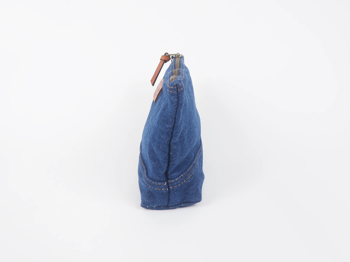 必需品をすべて収納できるようにデザインされたデニムポーチ。