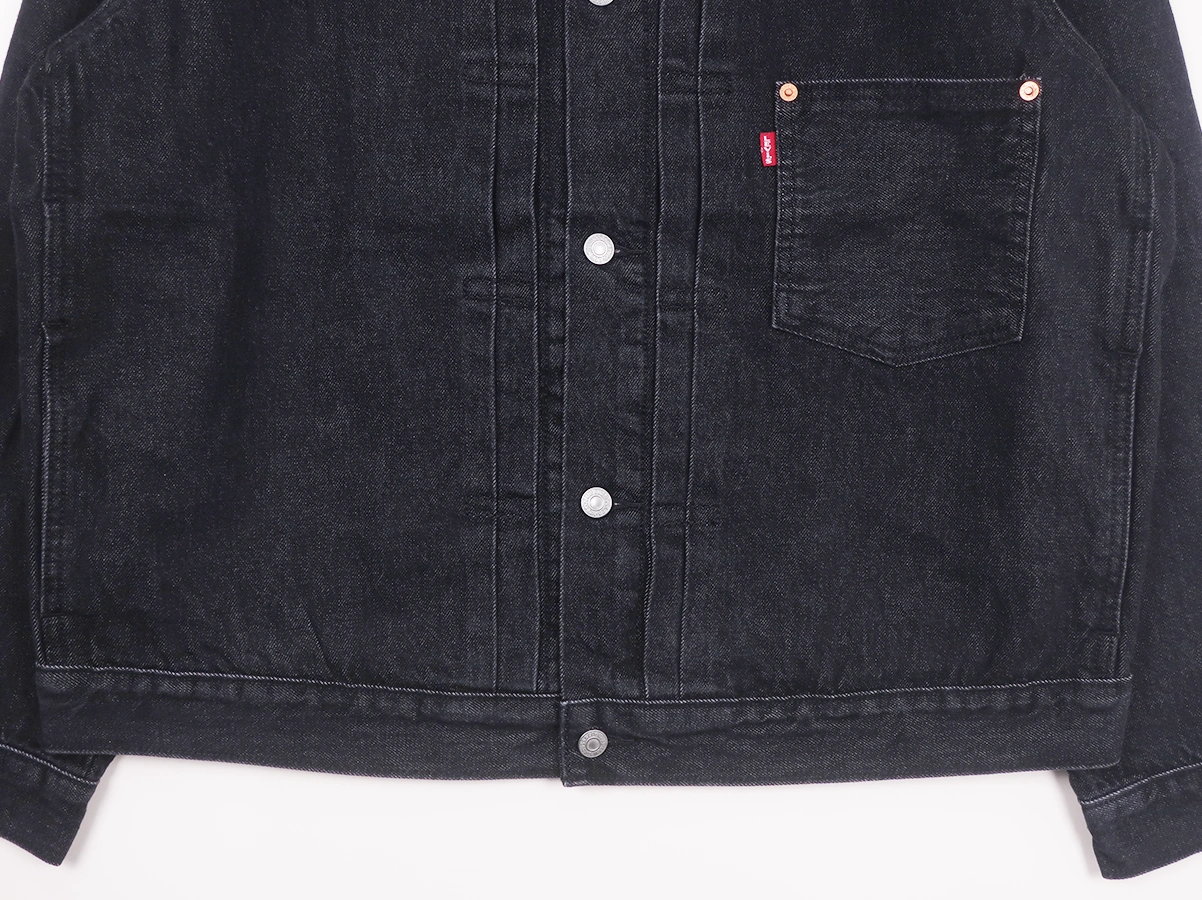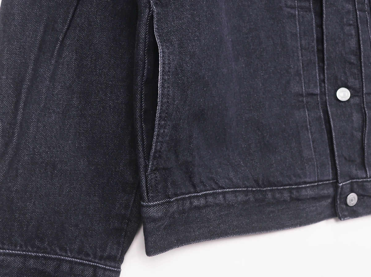 シルエットはボックス感のあるベーシックなフィット。Tシャツやスウェットの上からはもちろん、シャツとのレイヤードにも相性が良く、秋冬から春先まで幅広いシーズンで活躍。クラシックなTYPE Iの雰囲気を残しつつ、ブラックデニムならではの汎用性を備えたデニムジャケットです。