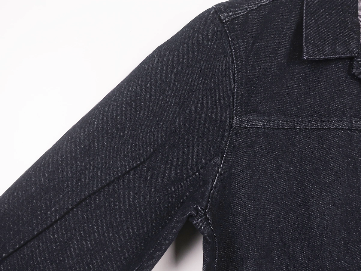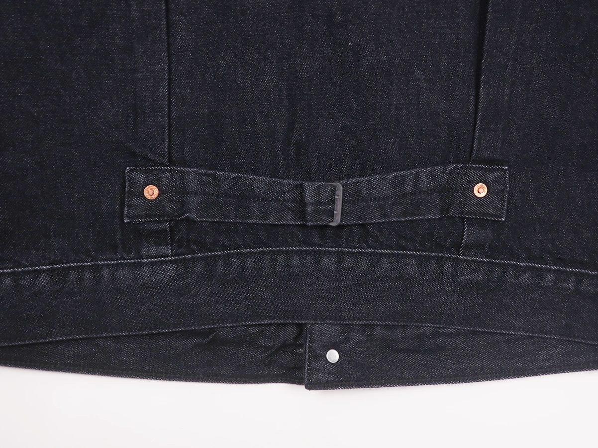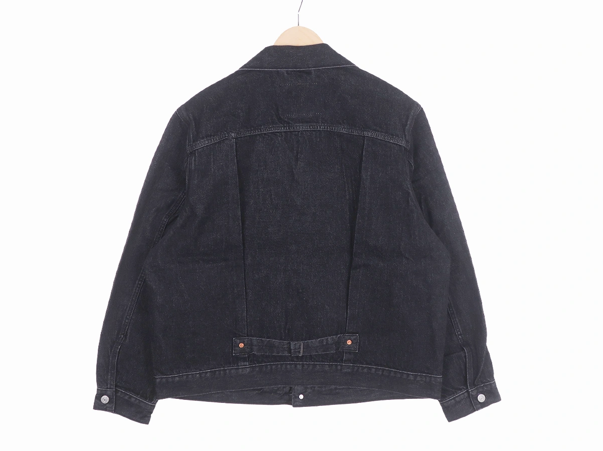 ブラックデニムを使用することで、ヴィンテージ由来のデザインを現代的で引き締まった印象に仕上げた一着。程よく厚みのあるデニム生地は、着用を重ねることで自然な色落ちやアタリが生まれ、経年変化も楽しめます。