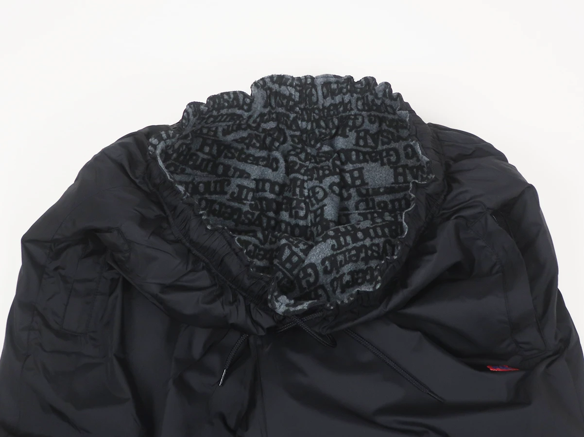 表側は撥水ナイロン、裏側は総柄マイクロフリースを採用し、気分やスタイリングに合わせて表情を変えられる。ナイロン面にはファスナー付きポケット、フリース面には片玉縁ポケットを配し、すっきりとした印象に。