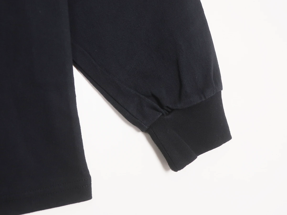 程よい厚みのあるコットン素材を使用し、柔らかく快適な着心地。首元をやや高めに設定したモックネック仕様で、カジュアルながらも上品な印象に仕上がっています。