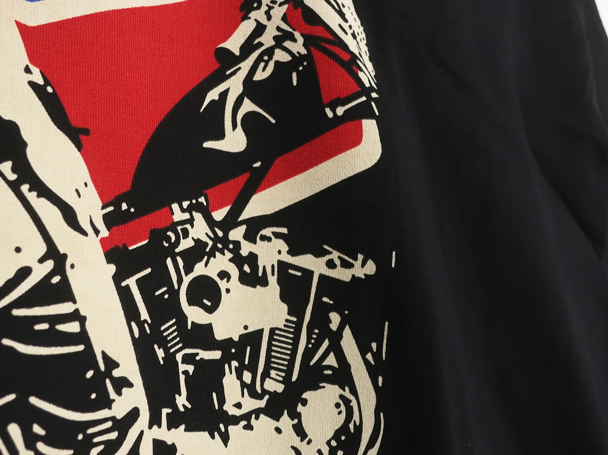 70年代のチョッパーカスタムに、BAD GIRLのイメージを掛け合わせた、アメリカンなデザインのTシャツ。オーガニックコットンを使用した、サステナブルな天竺素材を使用。