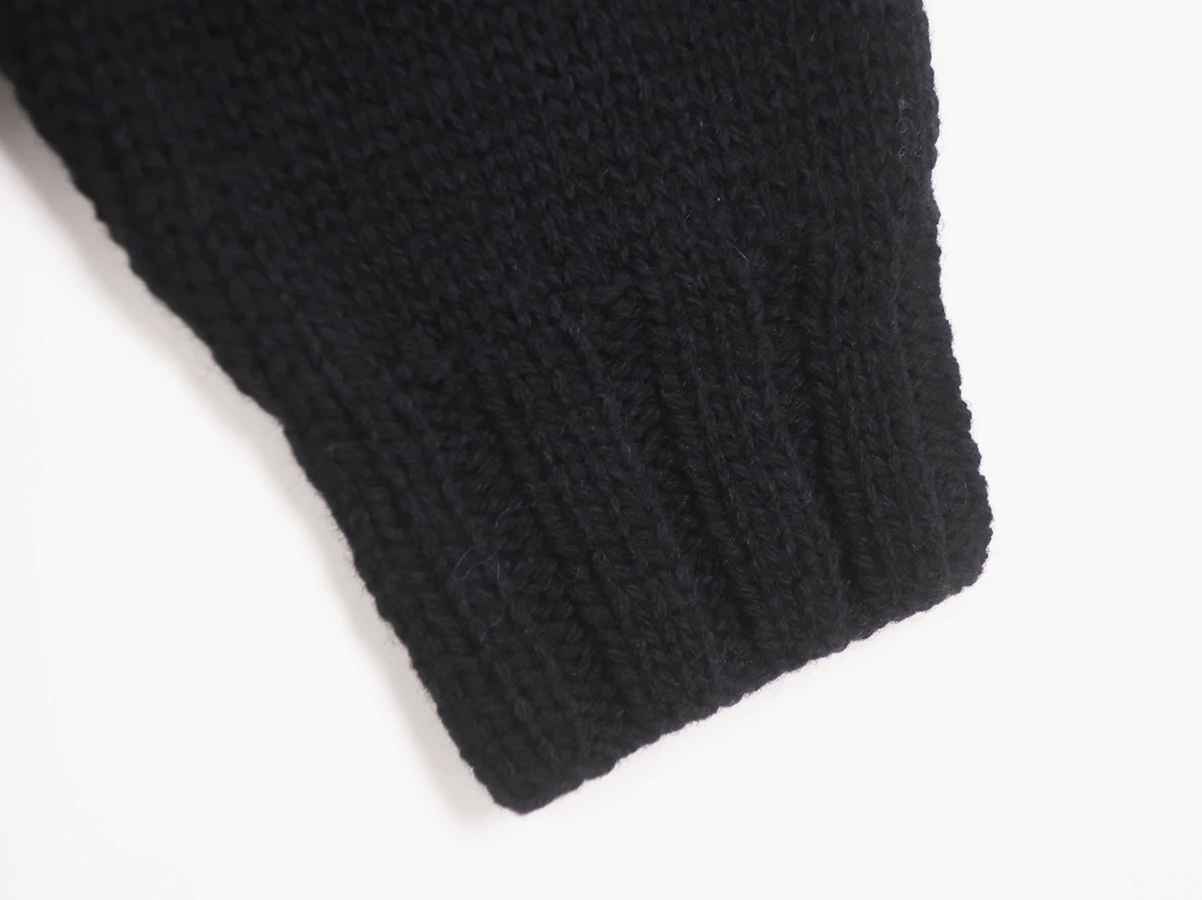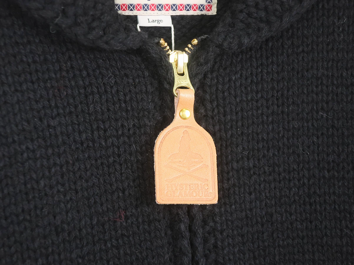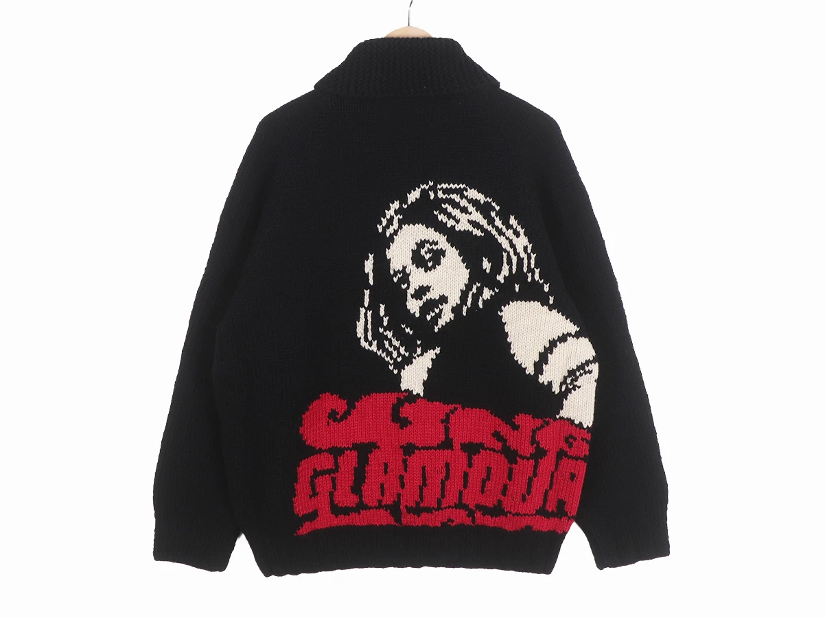 バックには、ブランドの象徴でもある VIXEN GIRLを大きく大胆に編み込み。手編みの技術が高いからこそ再現できた、大変手の込んだ一着。