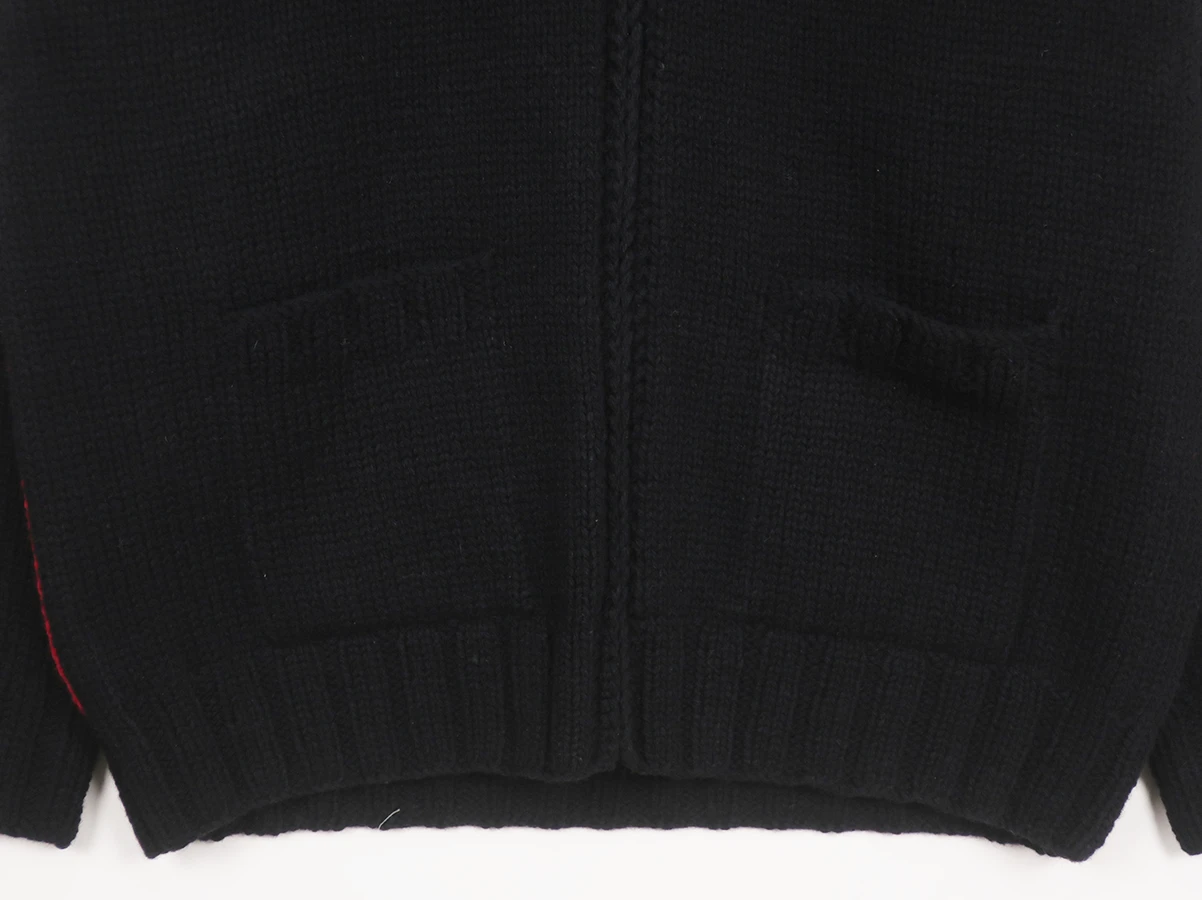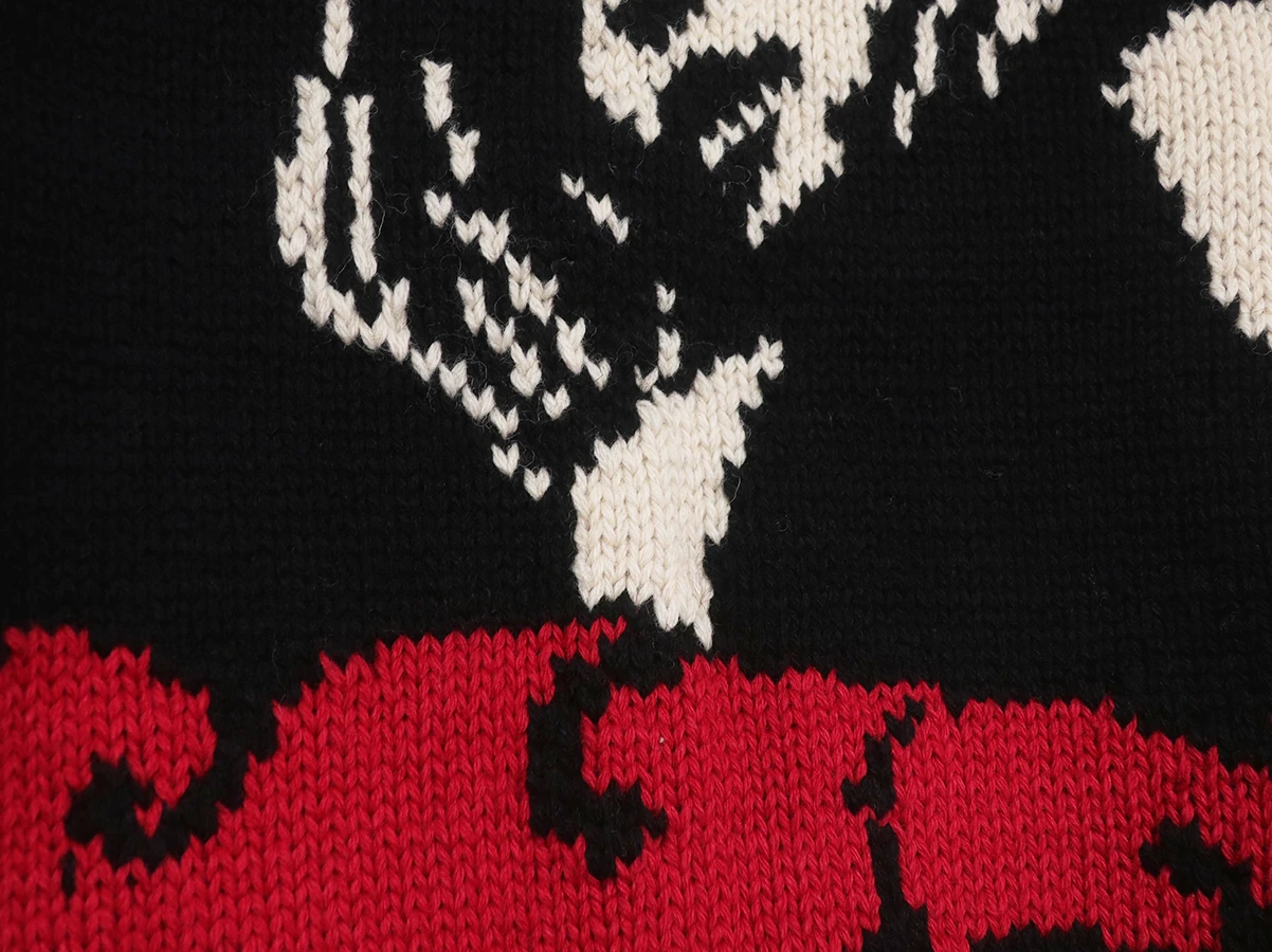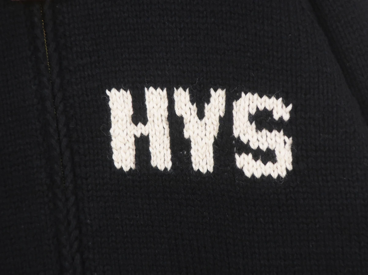 バックには、ブランドの象徴でもある VIXEN GIRLを大きく大胆に編み込み。手編みの技術が高いからこそ再現できた、大変手の込んだ一着。
