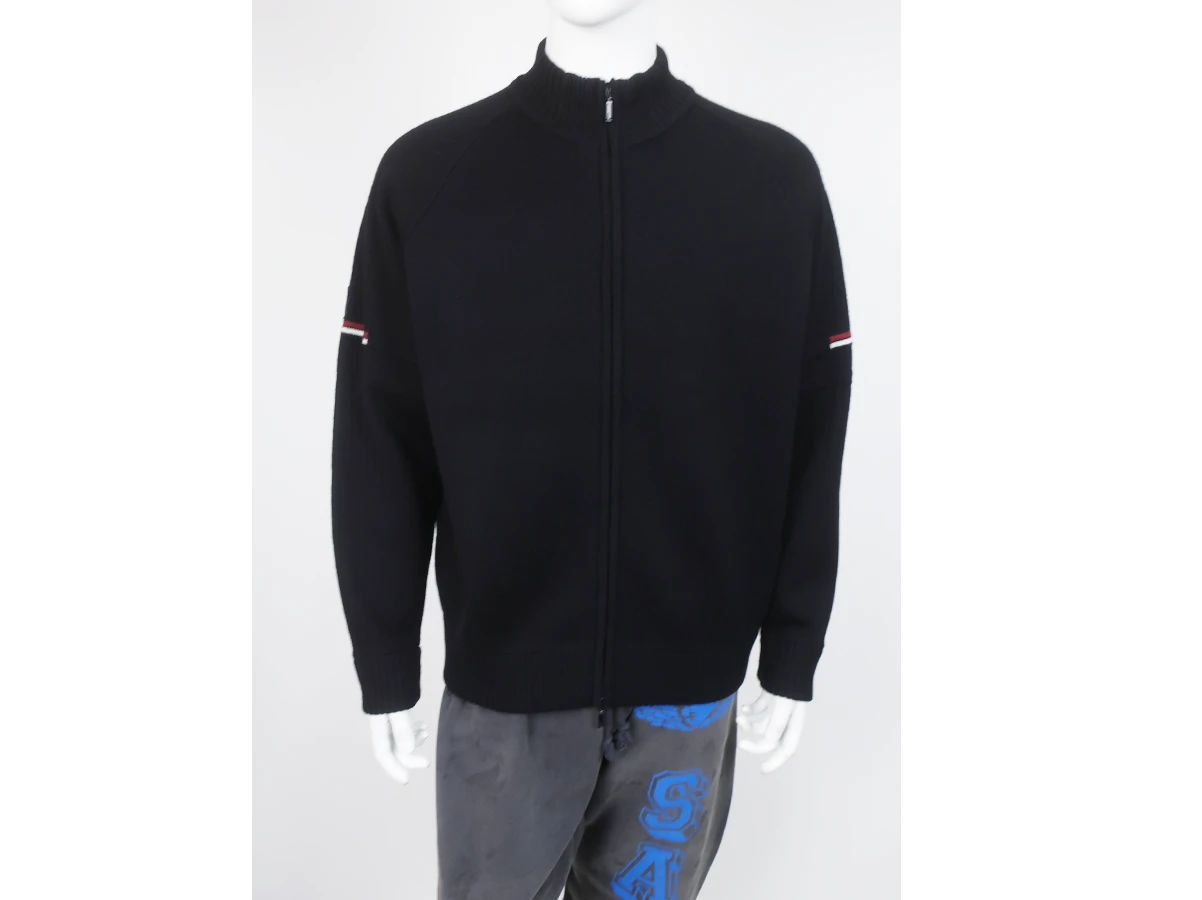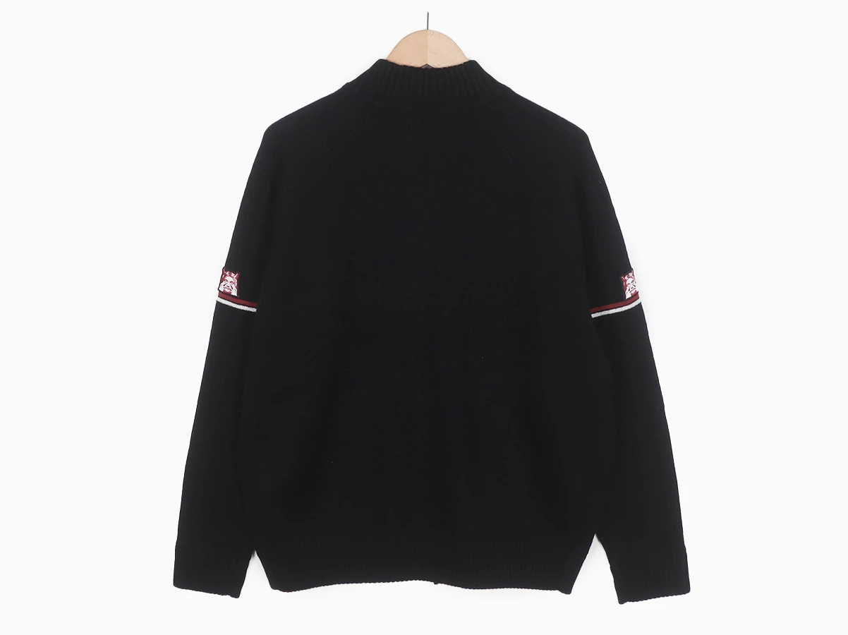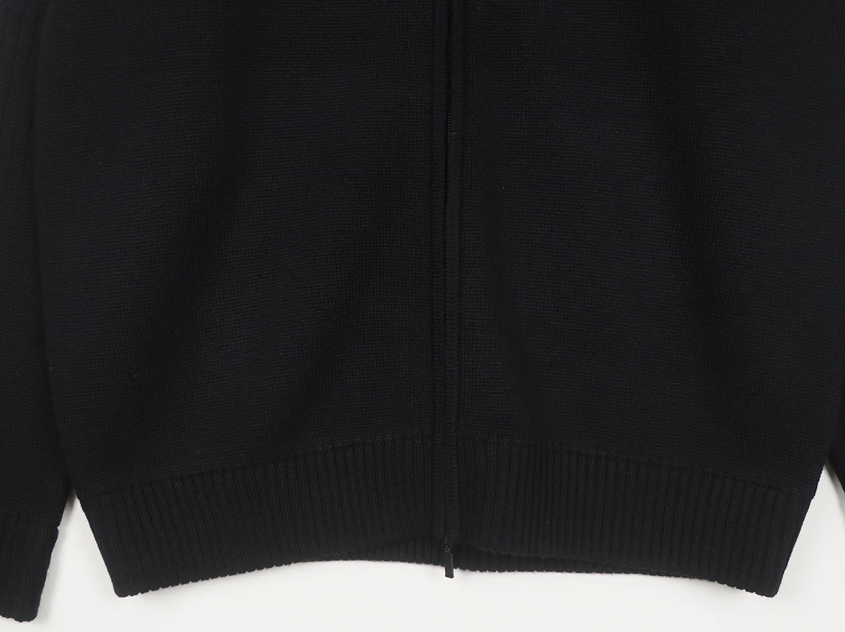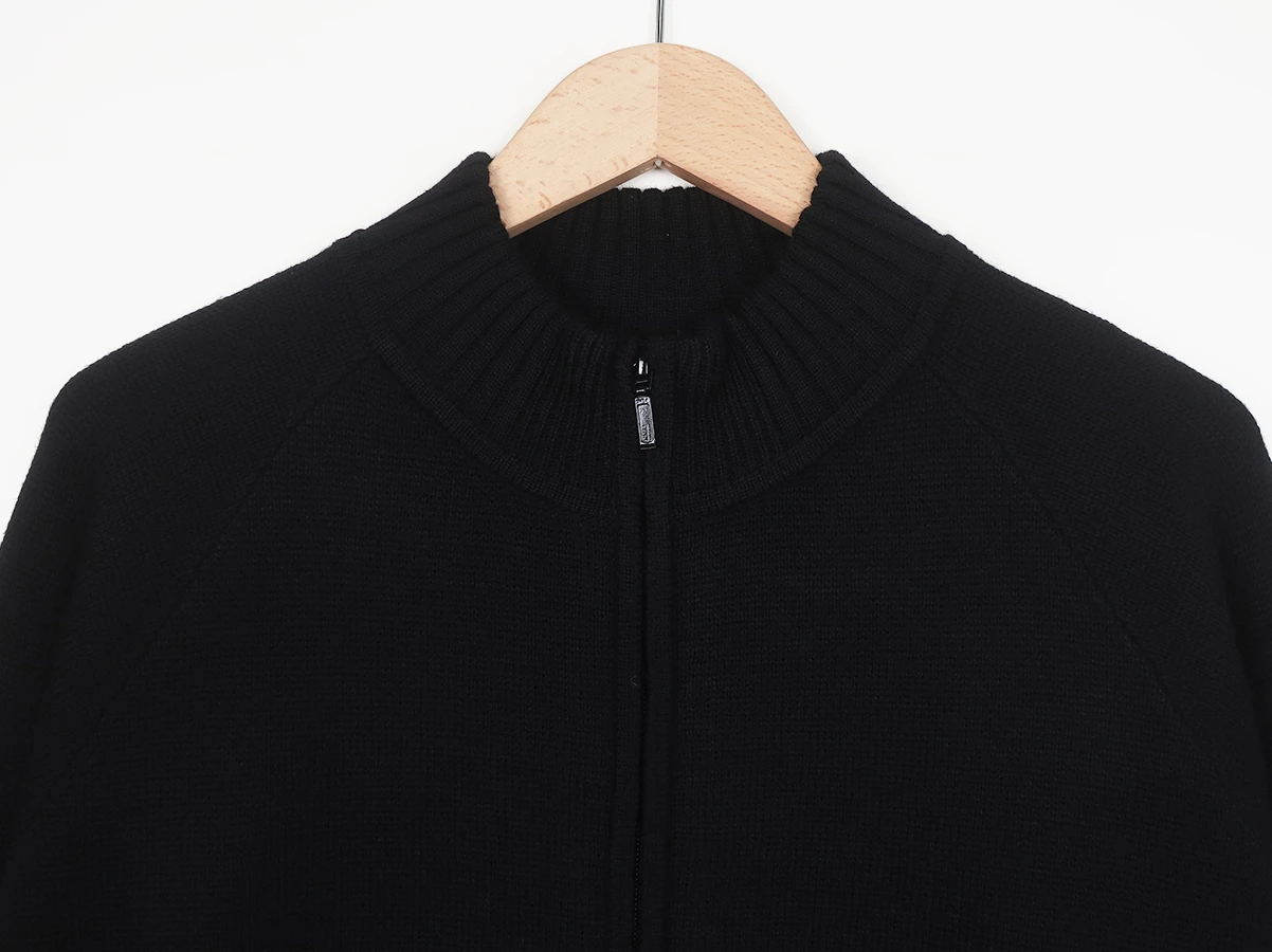 アクリルウール糸を使用した、Wジップ仕様のハイネックジャンパー。