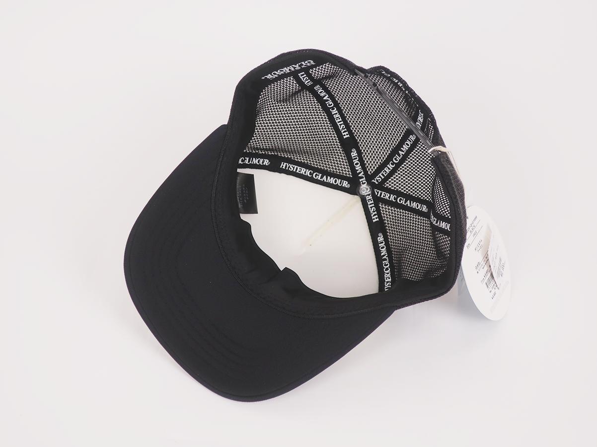 HYSTERIC GLAMOUR定番の70年代スクリプトロゴを配した、定番のトラッカー型メッシュキャップ。