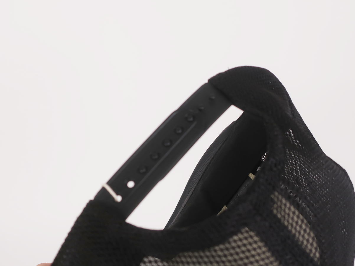 メッシュはソフトメッシュを採用しているため、肌なじみがよくメッシュ特有のチクチク感を感じず着用できる。後ろに備えたアジャスターでサイズ調節が可能。