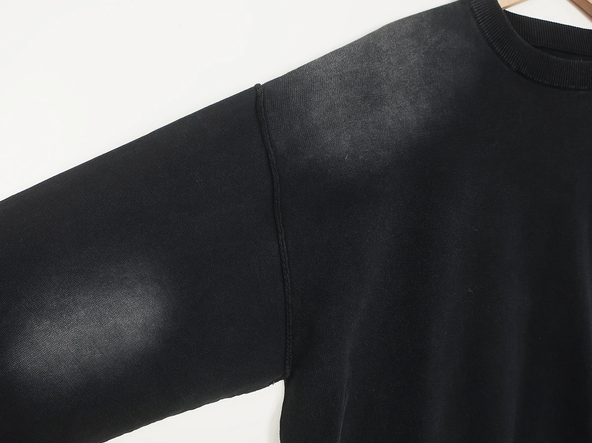 Heavy-Weight Sweat Embroidery Damage Over-Dye Crew Neck Pullover