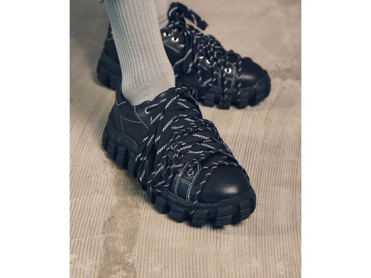 これまでにないデザインを求めゼロからつくりあげ、構想に非常に長い年月をかけ完成させたオリジナルソール【Rattling Sole】を使用した新奇なシューズ。軽量化も考慮しアウトソールにゴム、ミッドソールはEVAを採用。
