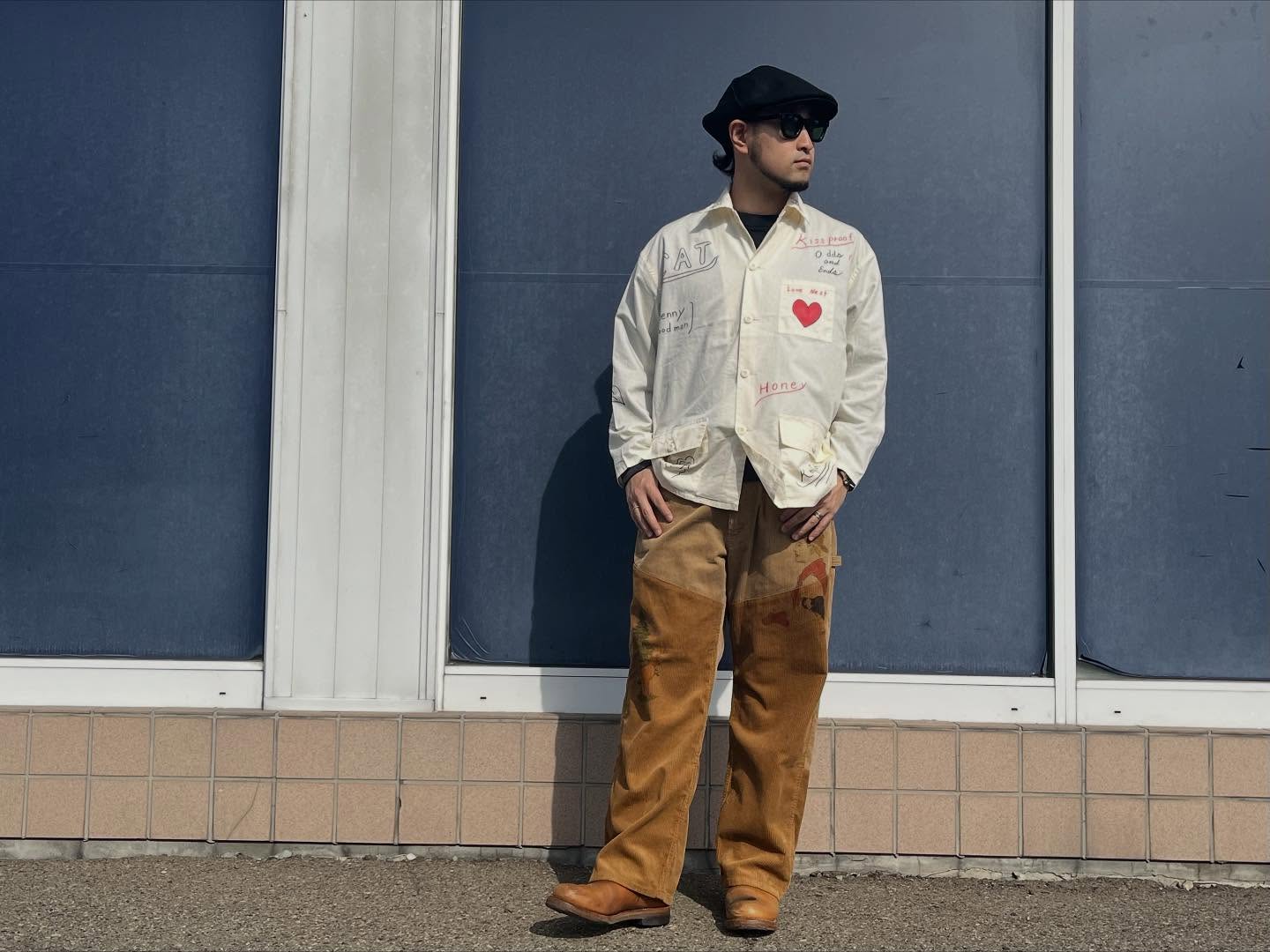 2025.11.11 Coodinate. 個性が重なる、アートワークなスタイリング model:180cm / 85kg >> コーディネートの詳細はこちらから (※Instagramにとびます) MADE IN STANDARD No.ms25f002-WHT memorial active coverall [white cotton broad] ¥28,600 MAISON SPECIAL No.11252 361326 Gradation Dye Prime-Over Crew Neck Knit Pullover ¥16,500 Work of Art Kendai No.WOA-000-253009 HUNTING PANTS ¥39,600 ※その他アイテム私物。 ※既に完売している商品もございます。