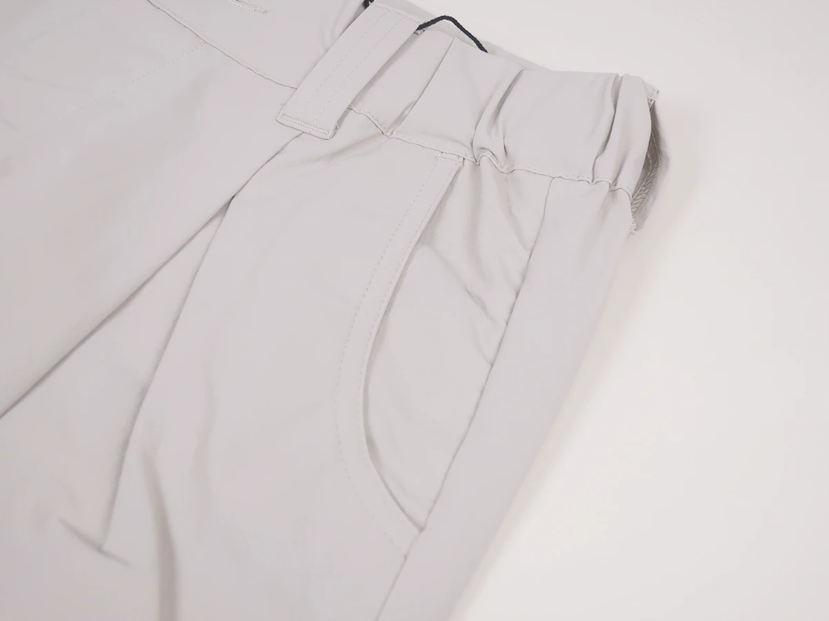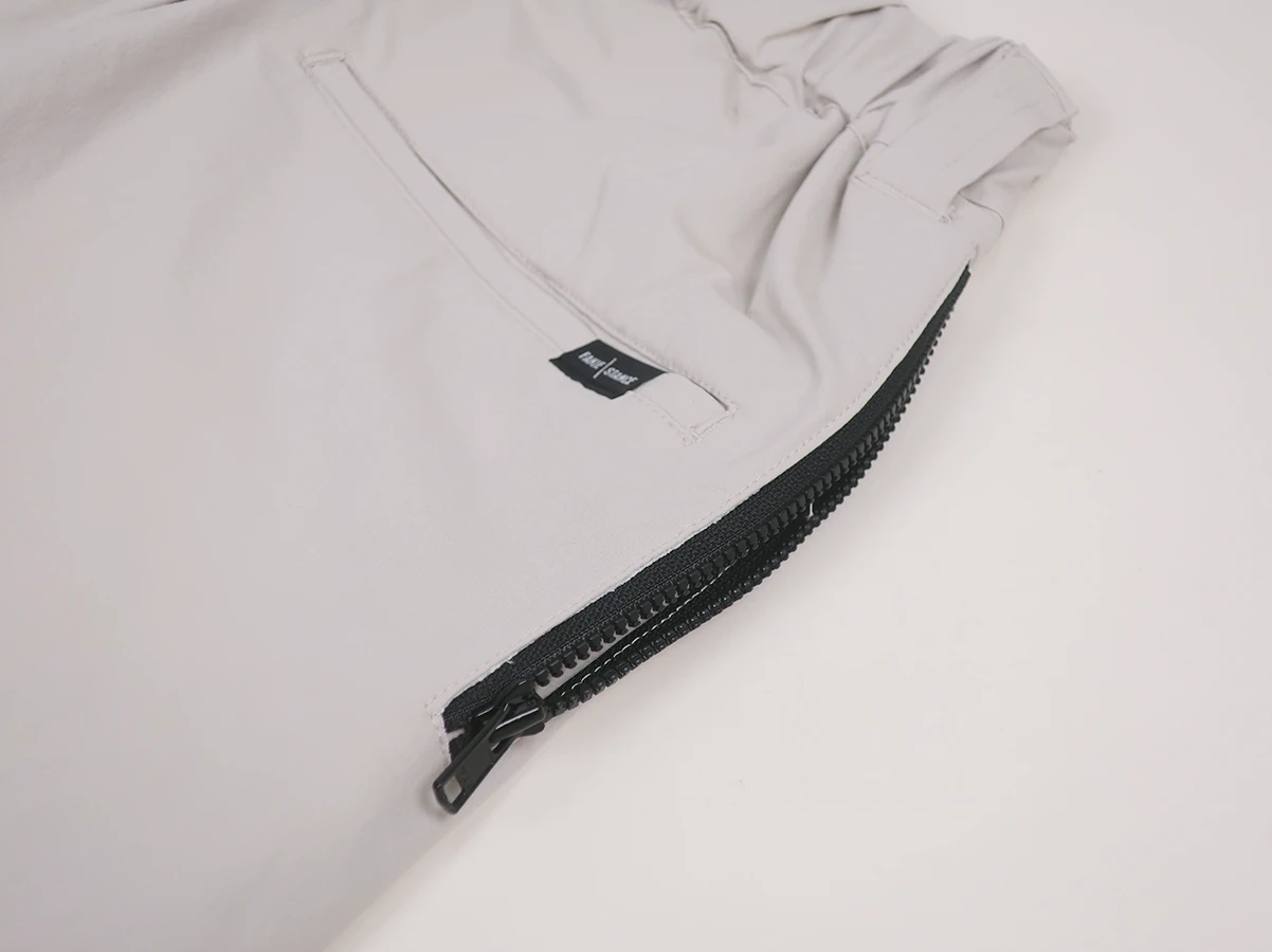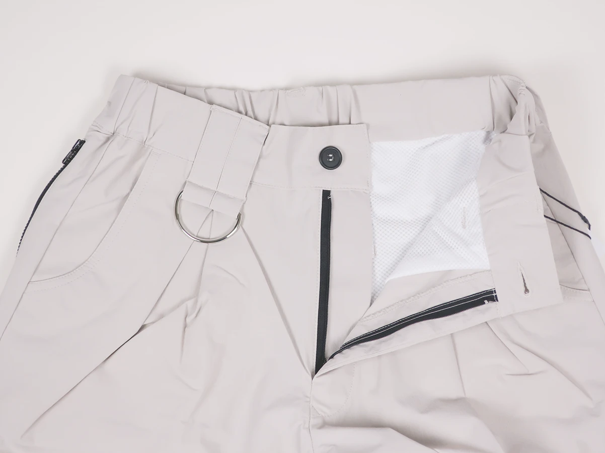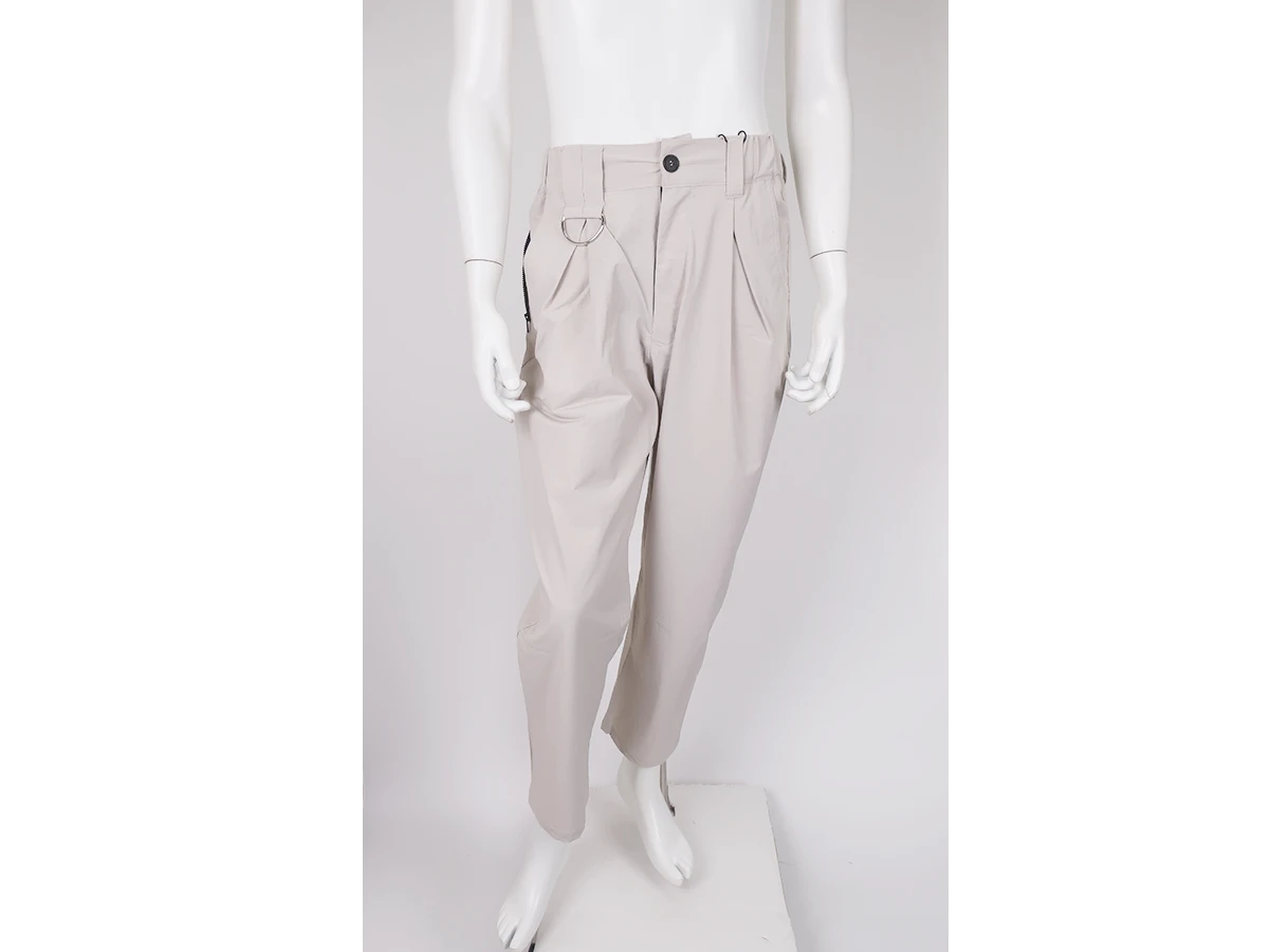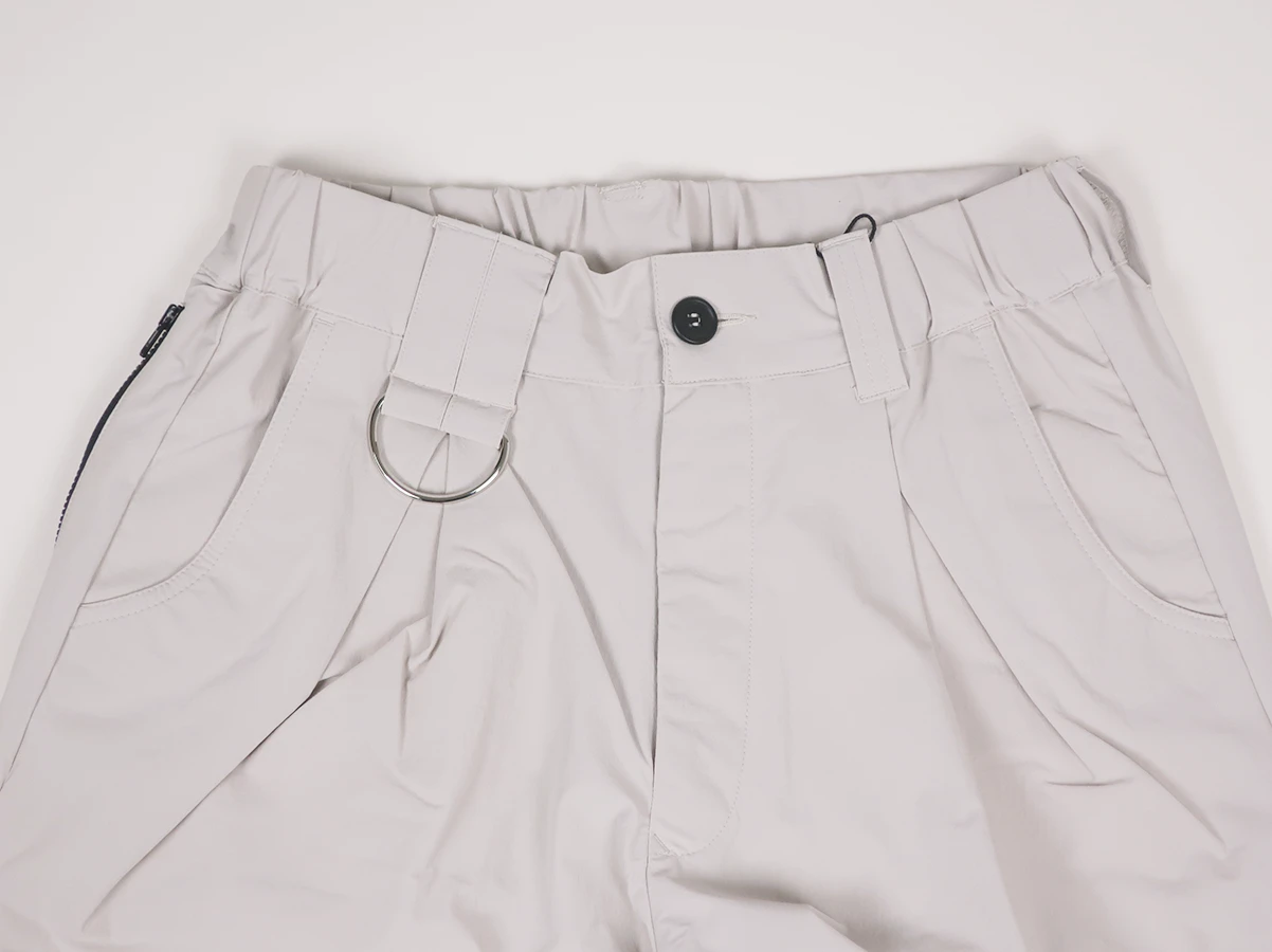 ナイロンストレッチ素材を使用したイージーパンツ。フロントに配置されたDカンが程よいアクセントになり サイドには実用性の高いファスナー付きポケットを備えています。