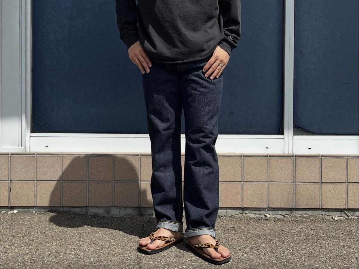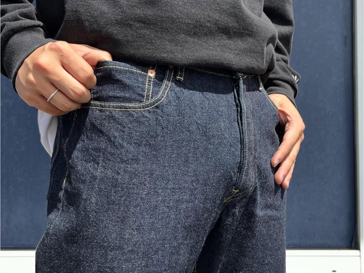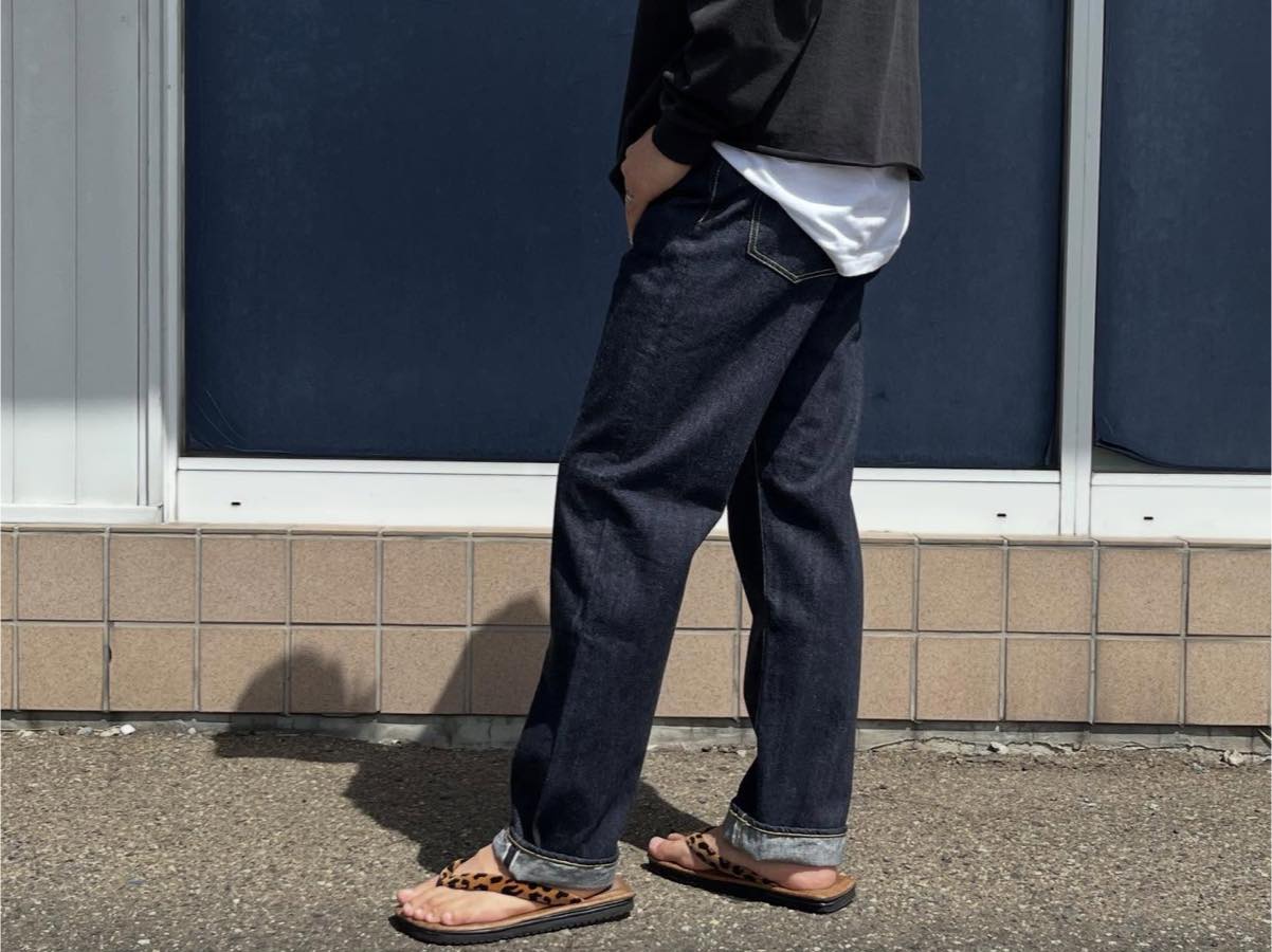 洗い方、そして乾燥方法にまでこだわったウォッシュド加工を施し、生機特有の風合いを最大限に活かしつつも軽さと着心地の良さを両立させたルーズストレート5ポケットジーンズ。