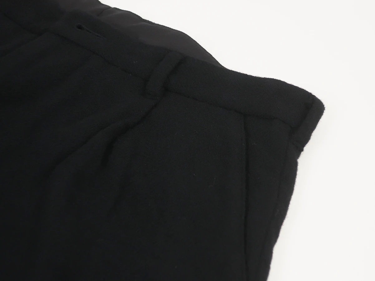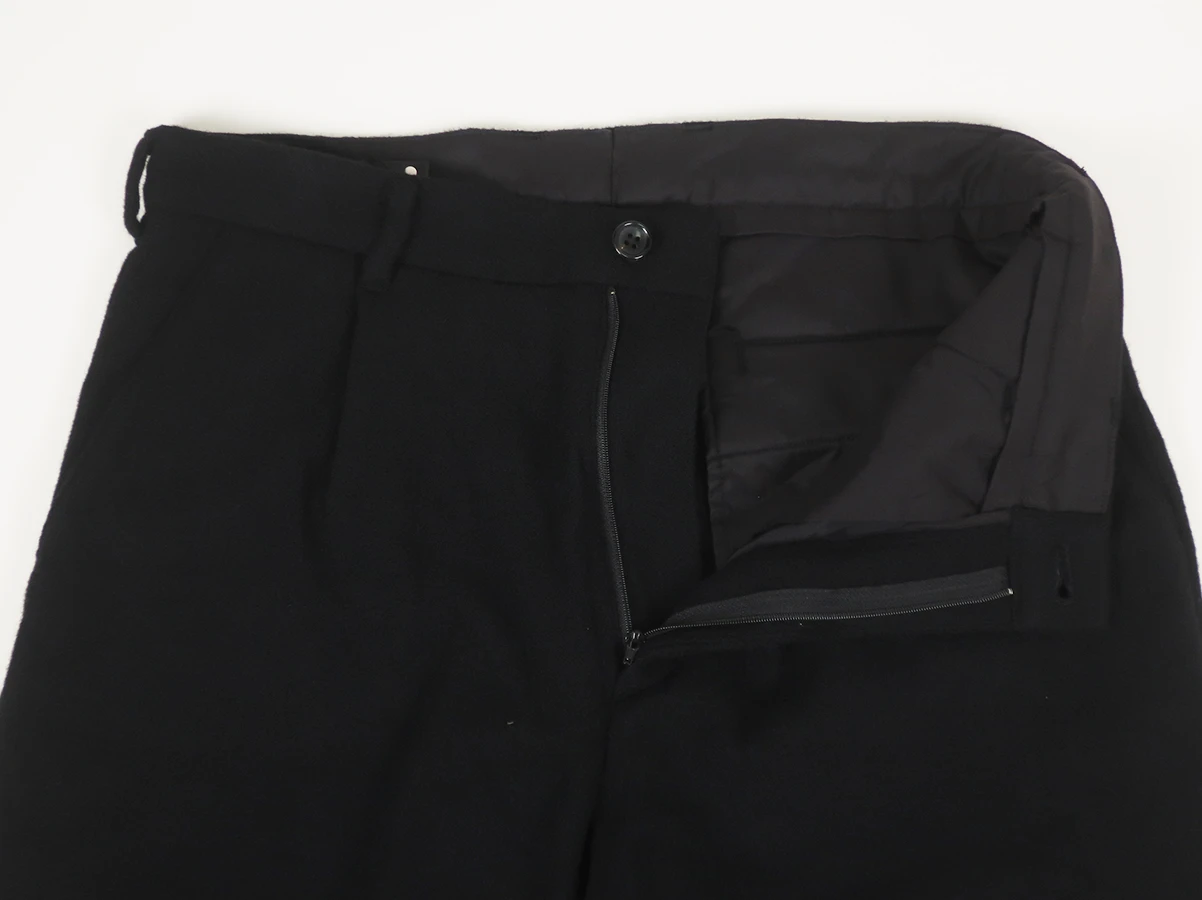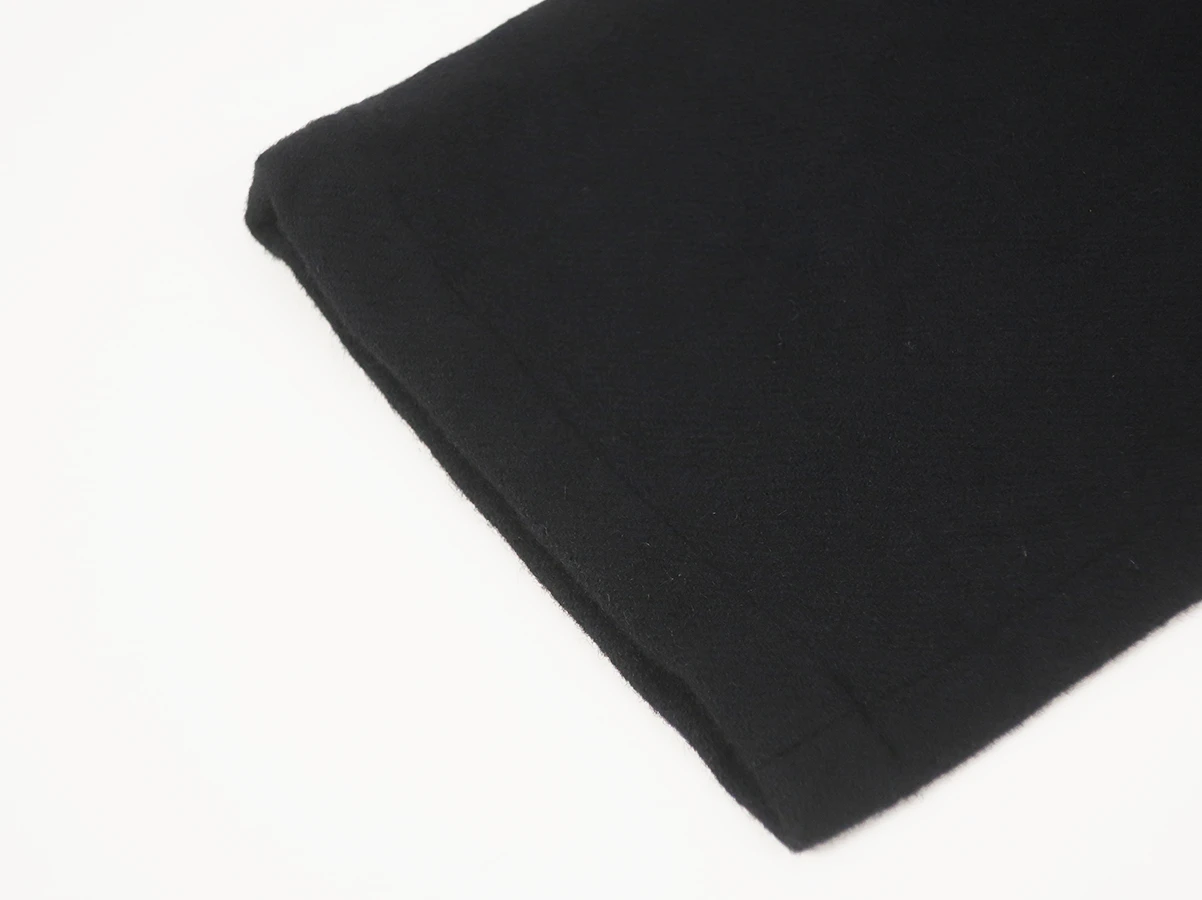 縮絨ウール特有のふくらみと落ち感が相まって、上品さの中にリラックスした空気感を漂わせます。単品での着用はもちろん、同素材ジャケットとのセットアップスタイルもおすすめ。ラフさと上品さを兼ね備えた大人の一本。