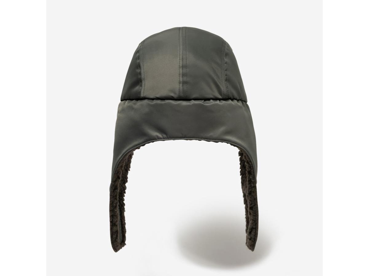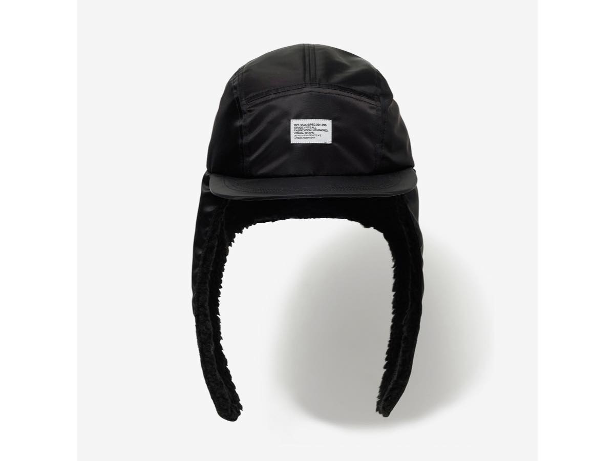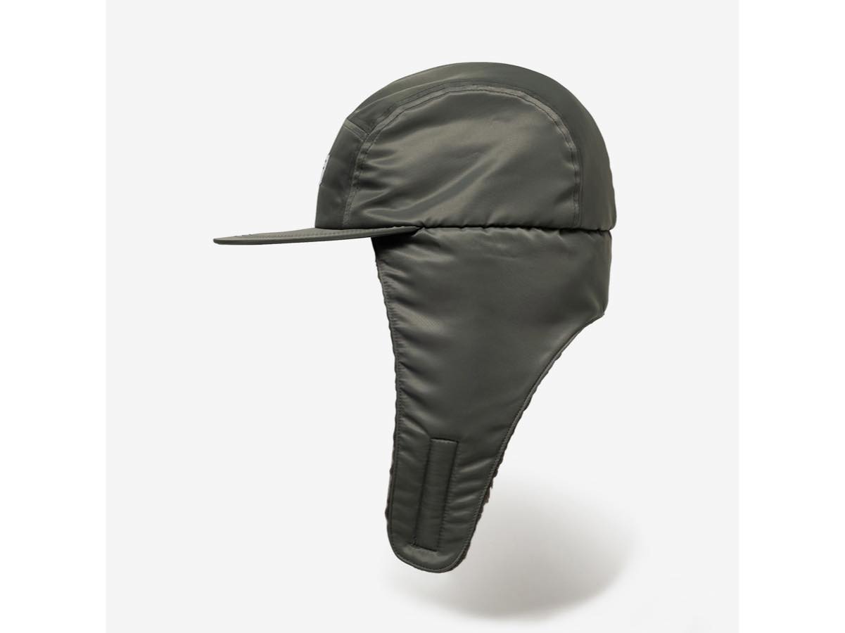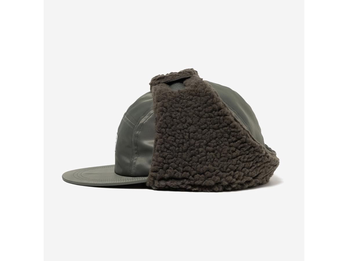 耐摩耗性に優れたCORDURA®ナイロンサテン生地を使用したイヤーマフキャップ。キャップ部分の内側はキルティング素材、イヤーマフ部分の内側はボアの仕様。フロントにブランドネームを配置。