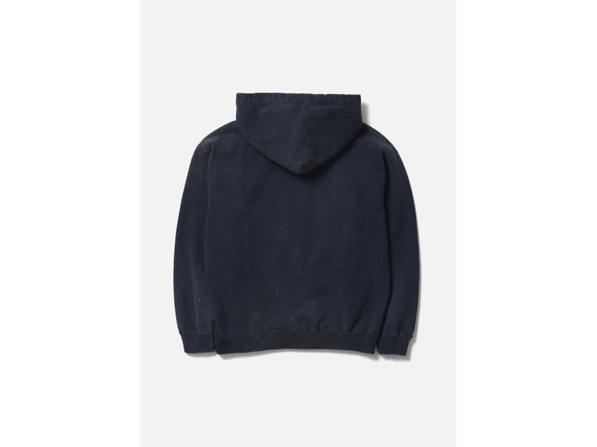フェード感を出した度詰めの裏毛素材をベースに、サベージ加工を施したプルオーバーフーディ。 色落ち、ペンキドリップ、汚し、ダメージなどの複合加工を用いてリアルなエイジングを表現。フロントにグラフィックをプリント。サイドシームにピスネームを付属。