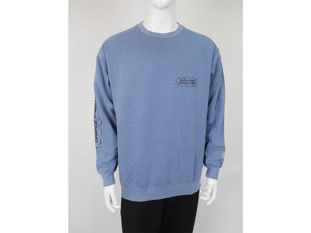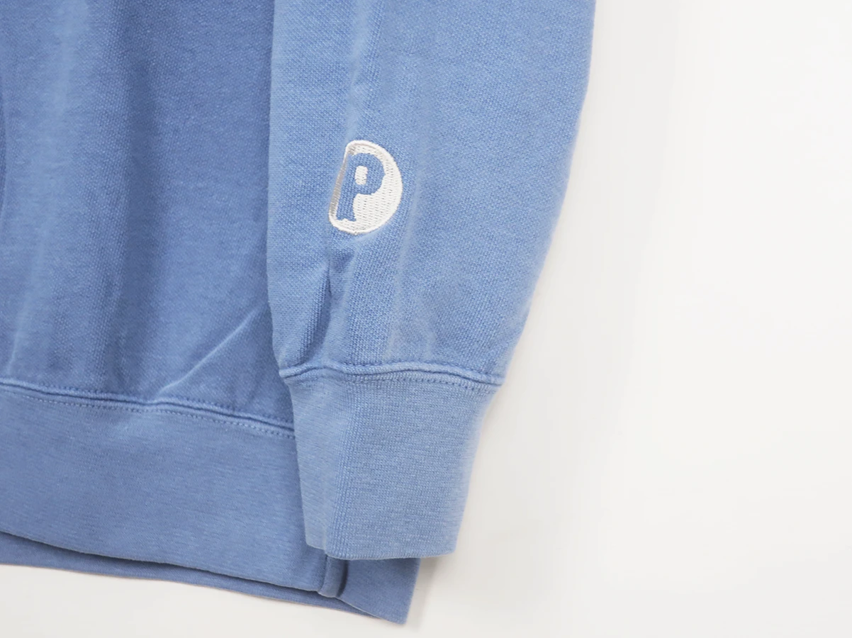 フロント左胸・右袖・背面にグラフィックをプリントしたスウェット。左袖にはPワッペンを配置し、シンプルながら存在感のあるデザインに仕上がっています。