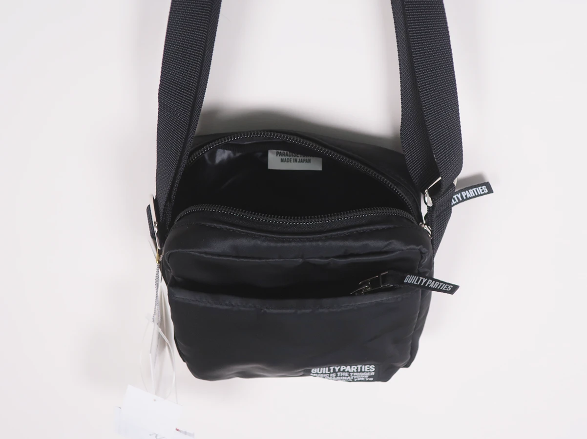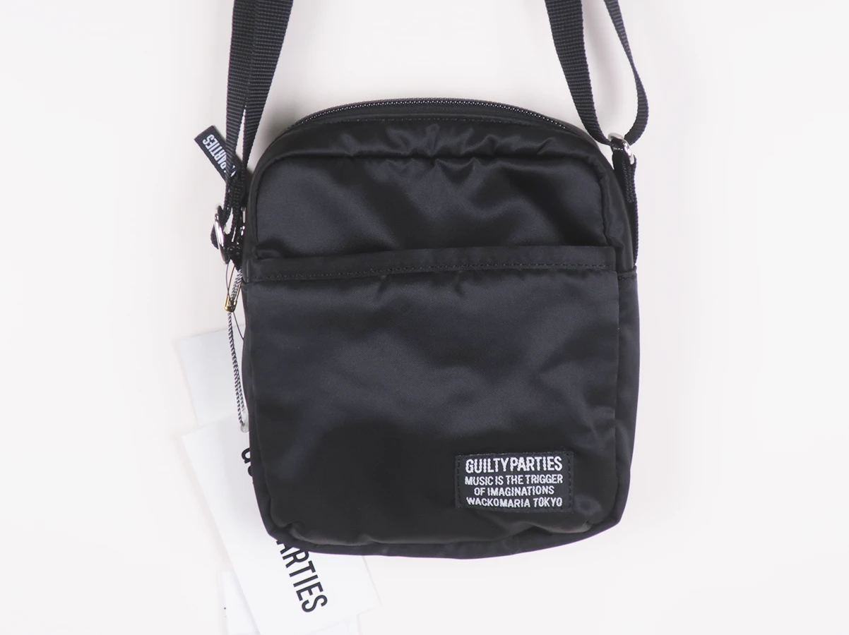 WACKO MARIAとSPEAK EASYによるコラボレーション。ナイロン素材によるスモールショルダーバッグ。フロント正面にブランドパッチ、ZIPタブにGUILTY PARTIEのロゴを配置。