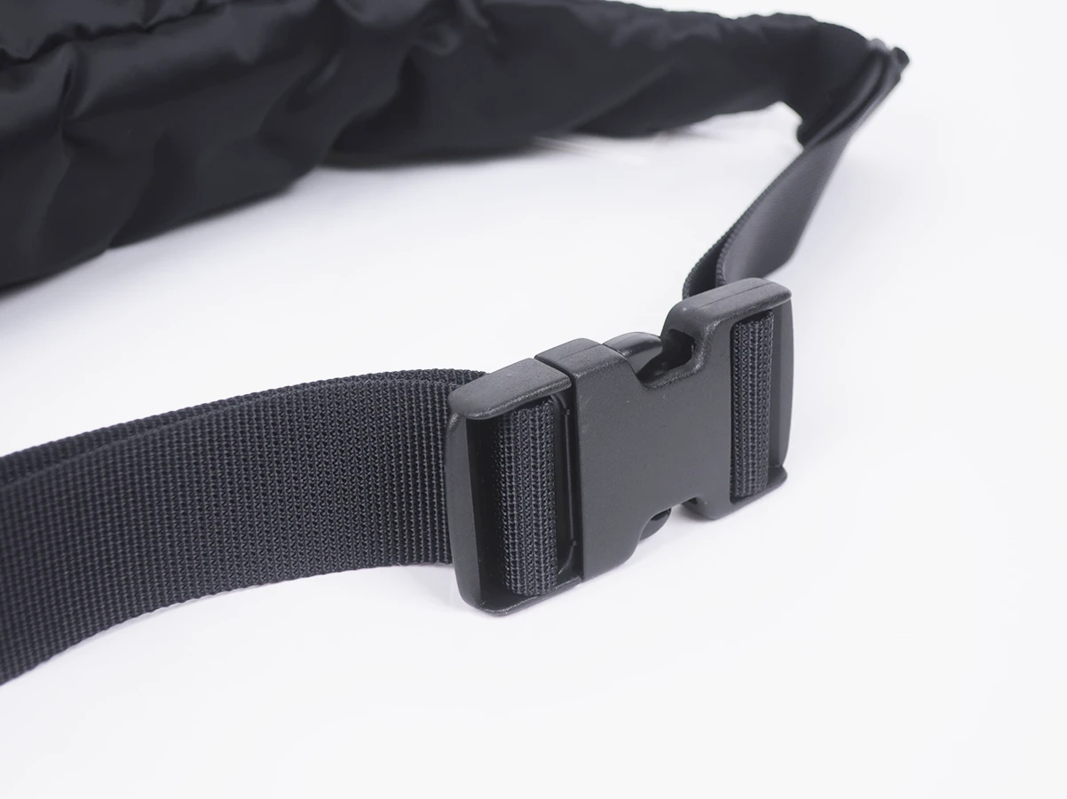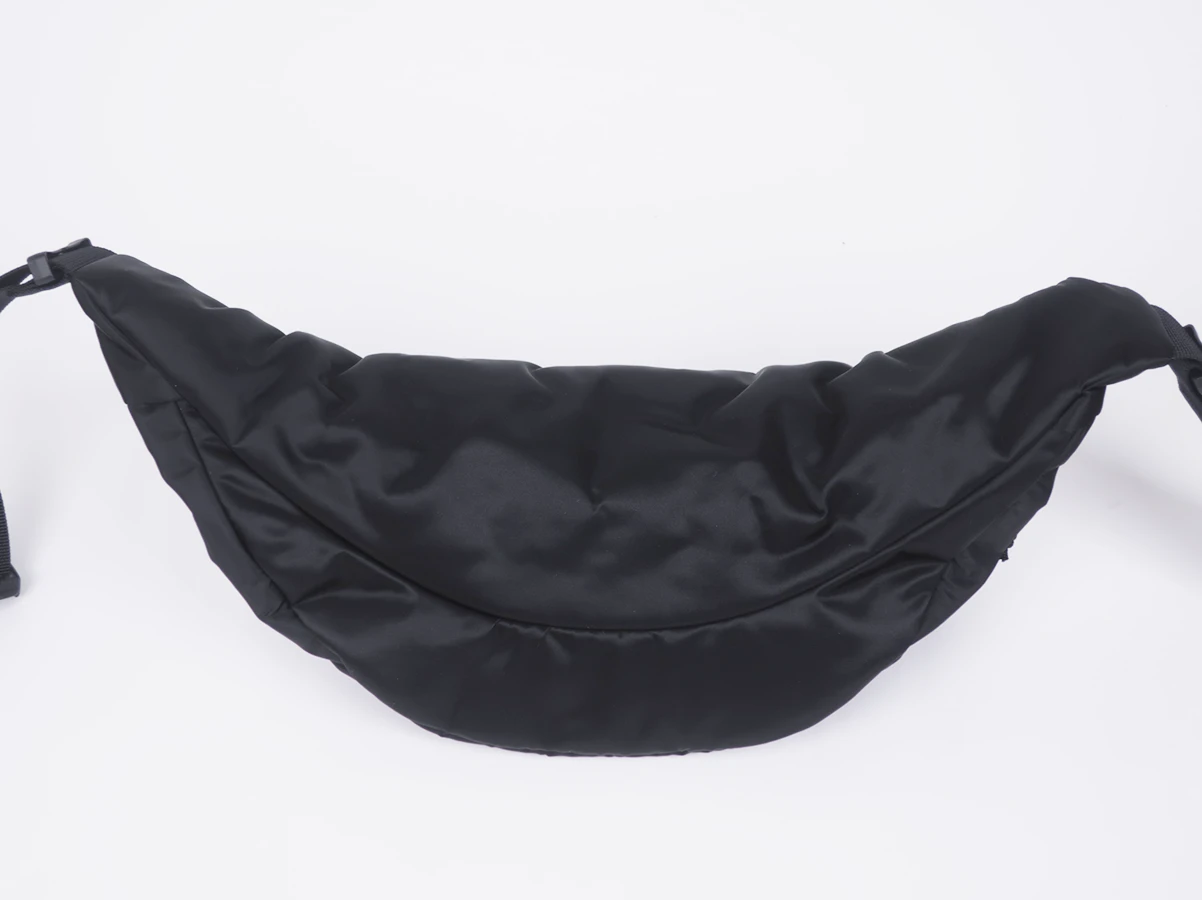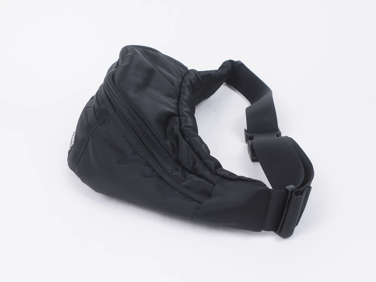 ナイロン素材で、正面に配置されたブランドパッチが印象的。フロントに2つのポケットを配置し収納力を確保しています。ウエストバッグとしてはもちろん、斜め掛けでの使用もおすすめ。コーディネートのアクセントとして活躍する一品です。
