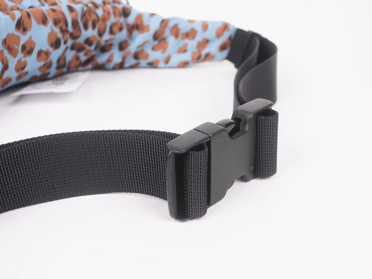 存在感のあるレオパード柄と正面に配置されたブランドパッチが印象的。フロントに2つのポケットを配置し収納力を確保しています。ウエストバッグとしてはもちろん、斜め掛けでの使用もおすすめ。コーディネートのアクセントとして活躍する一品です。
