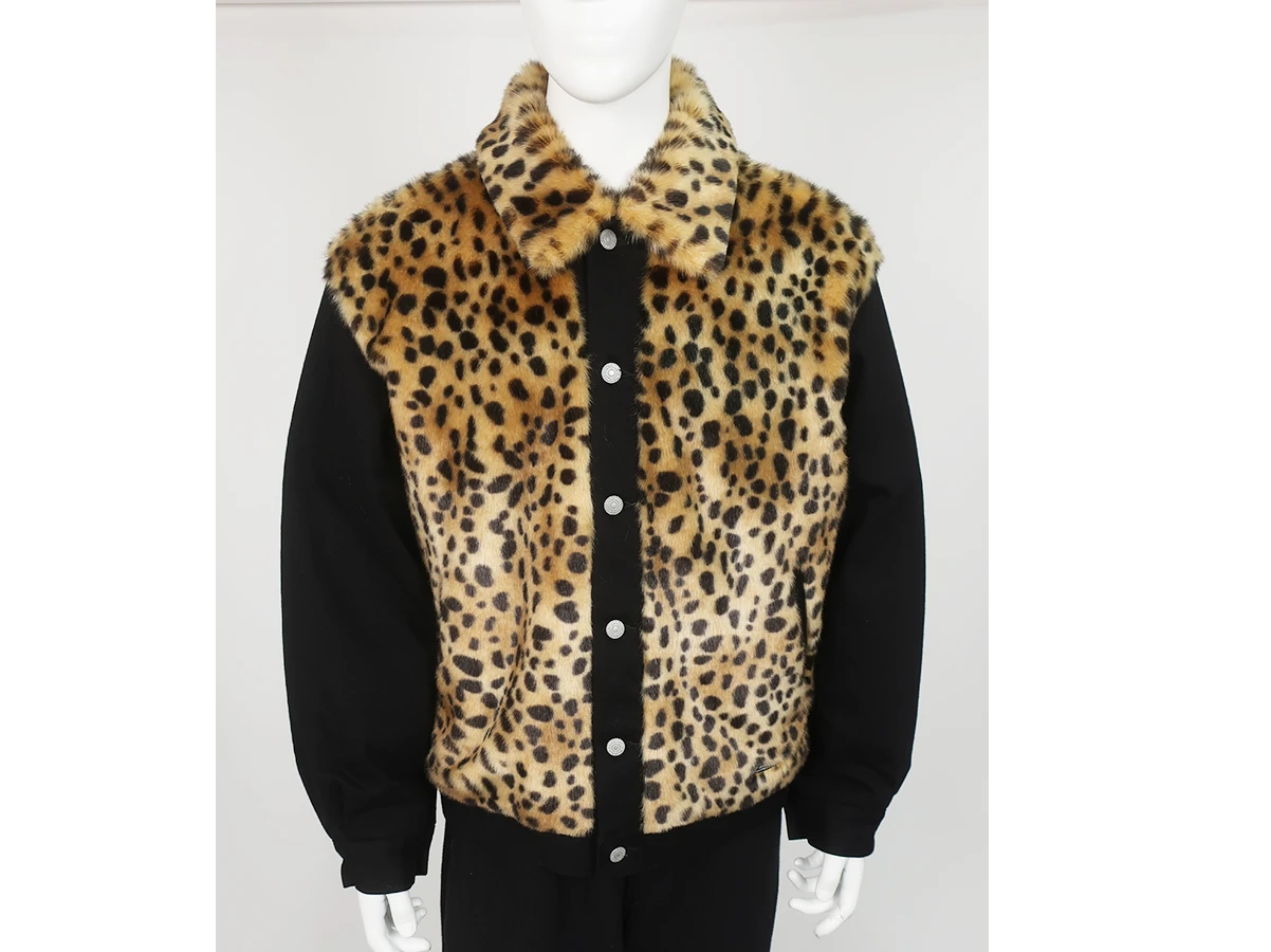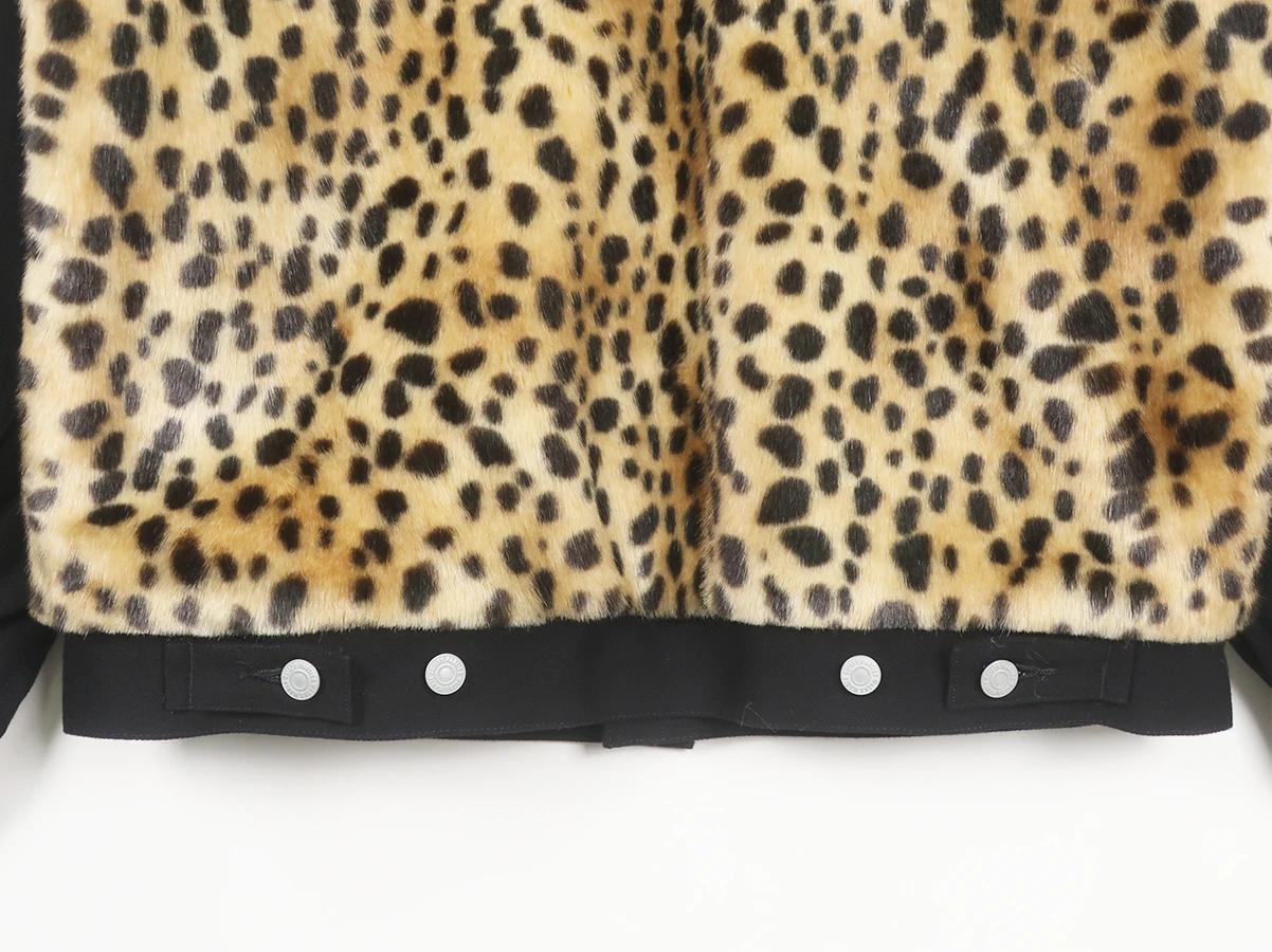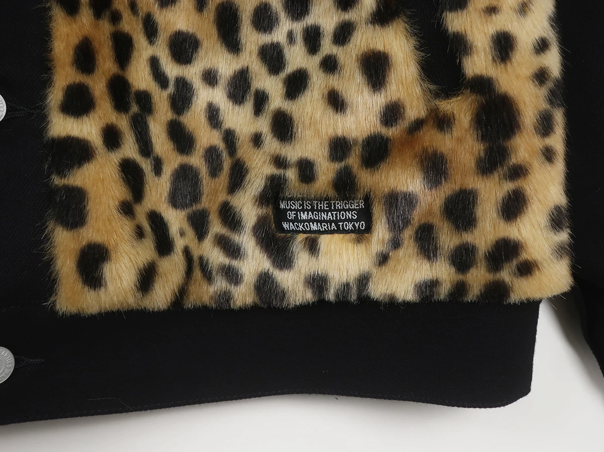 クラシックなグリズリージャケットをWACKO MARIAのフィルターを通して再構築。ボディと襟にはレオパードを思わせるドットパターンを採用、アーム・ボタン部分・裾にはデニムを組み合わせた、素材のコントラストが際立つ一着です。