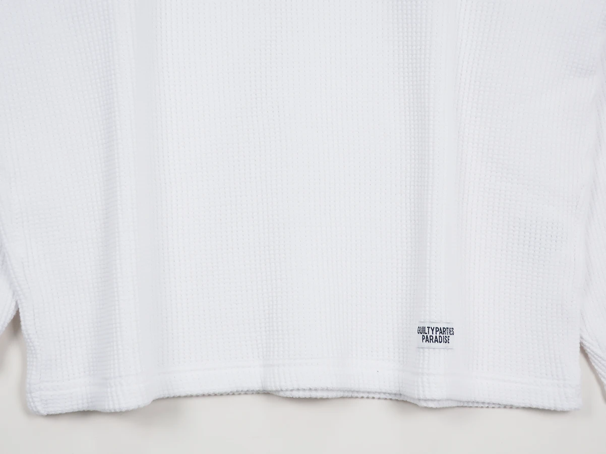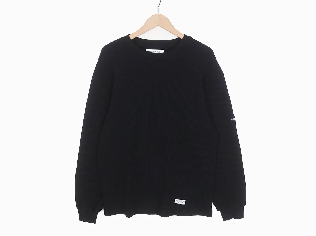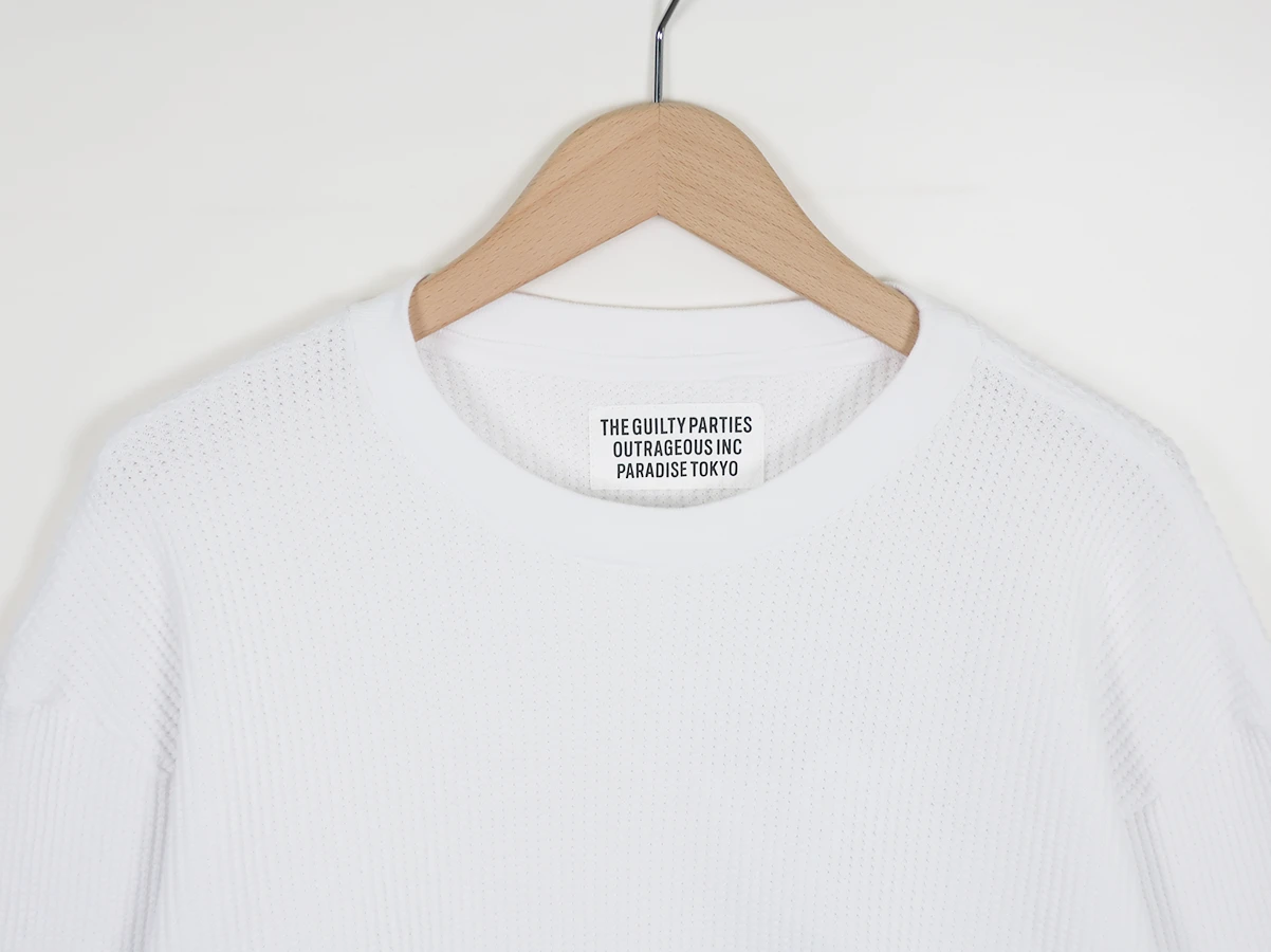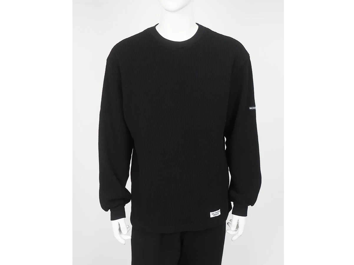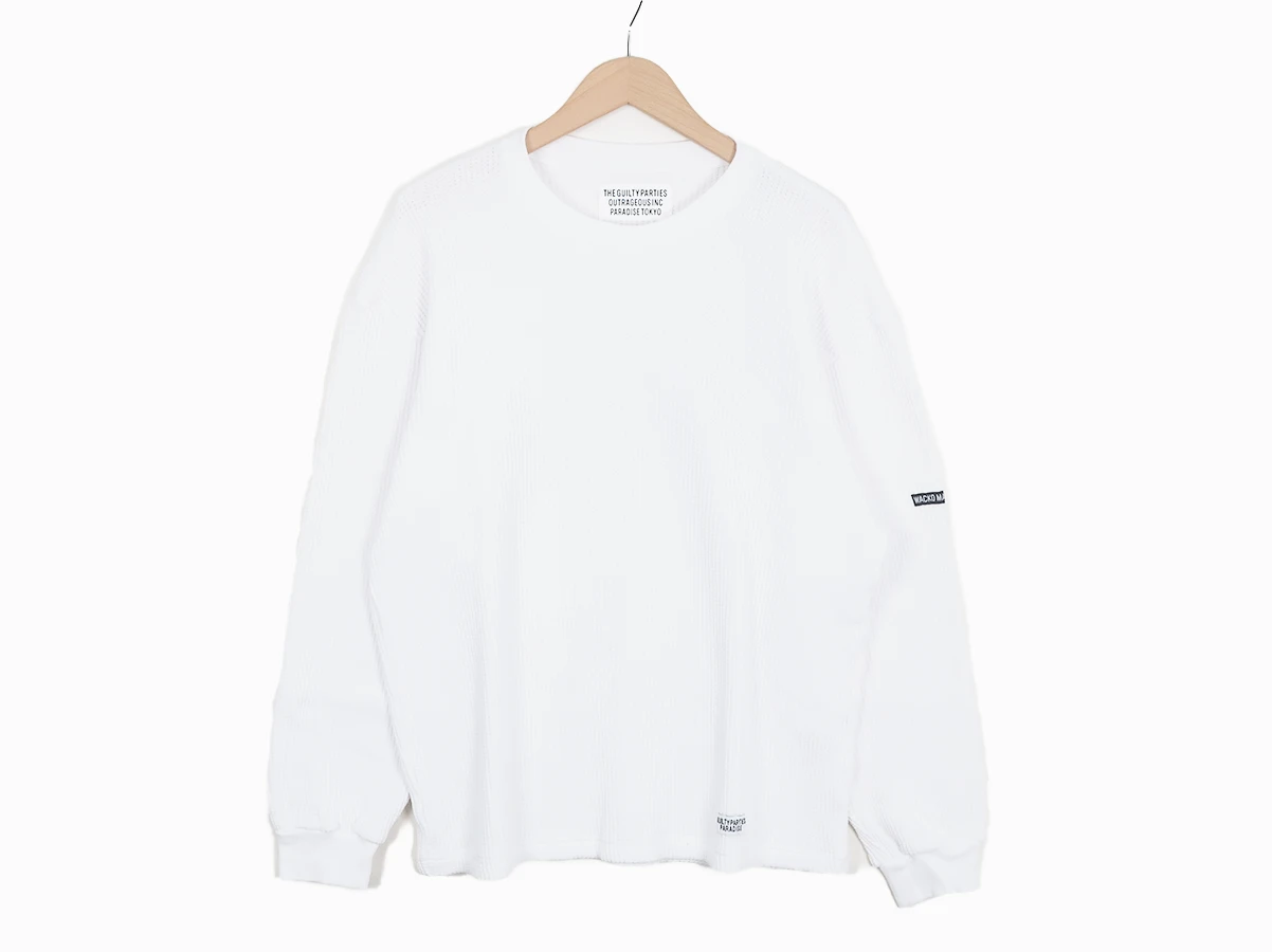 袖部分にはWACKO MARIAのパッチを配置し、シンプルな中にもブランドらしいアクセントをプラス。一枚着としてはもちろん、インナーとしても活躍する万能なアイテムです。