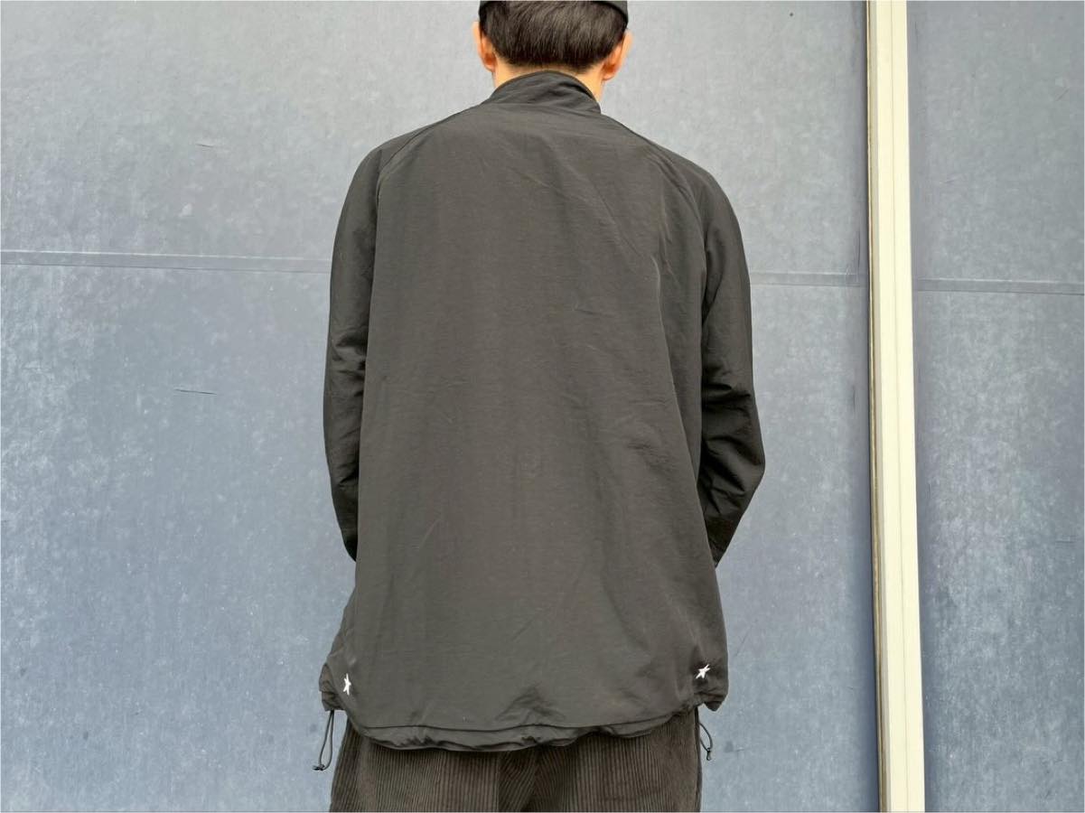 胸元にはブランドらしいワッペンを配置し、シンプルながら存在感のある仕上がりに。裾にはドローコードを備え、シルエットの調整も可能です。ポケットを配置しデイリーに使いやすいバランス。幅にゆとりを持たせたシルエットで、インナーを選ばず着用できます。