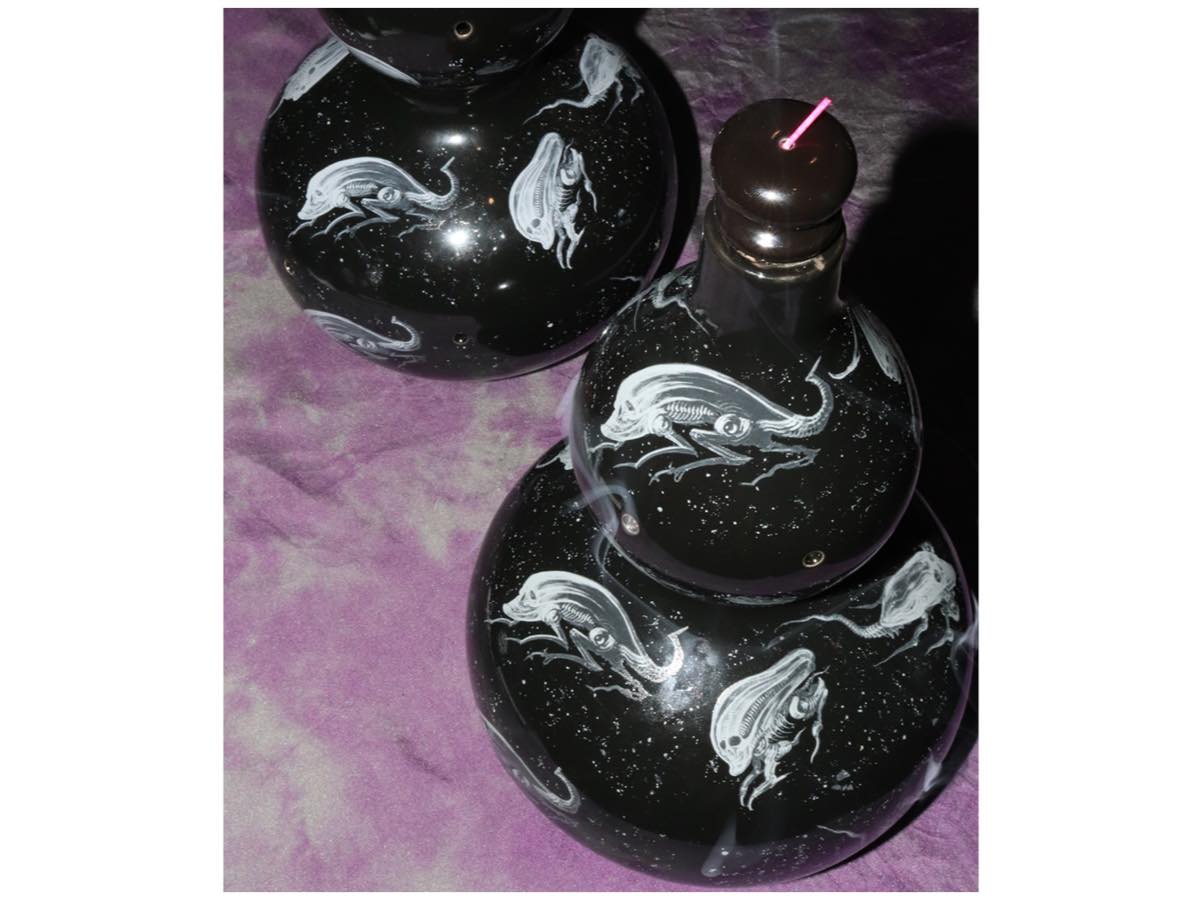 美濃焼きで製作されたオリジナルインセンスチャンバーです。USで90年代から「Tattoo City」で活動し、その後2000年初頭「Blackheart Tattoo」設立、現在もアメリカで精力的に活動しているタトゥーアーティストとコラボレーション、描き下ろしたアートワークをプリントしたインセンスチャンバー。