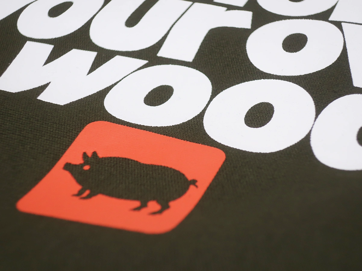 フロントにポークチョップのグラフィックを配置したトートバッグです。