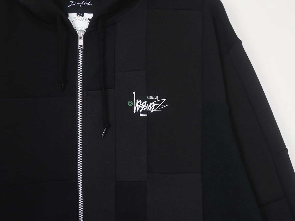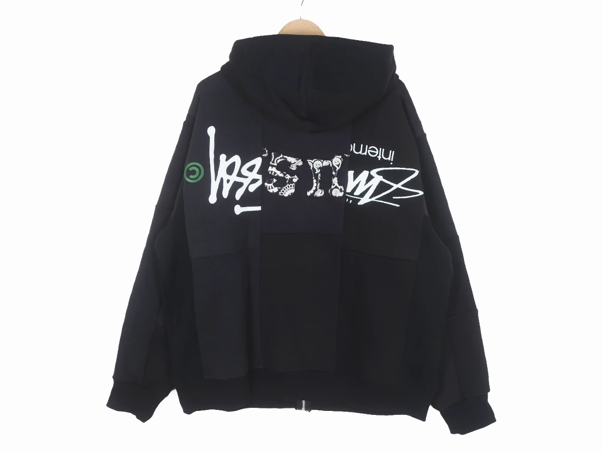 プルオーバーモデルとは同様の要素で仕上げていますが、ベースにはジップアップパーカーを使用しています。他の OLD STUSSY シリーズ同様、バックプリントにはストックロゴ、 ペーシックロゴ、さらにその他3種類のプリントロゴをパッチワークで組み合わせており、全く同じ組み合わせは存在しないオンリーワンのアイテムです。