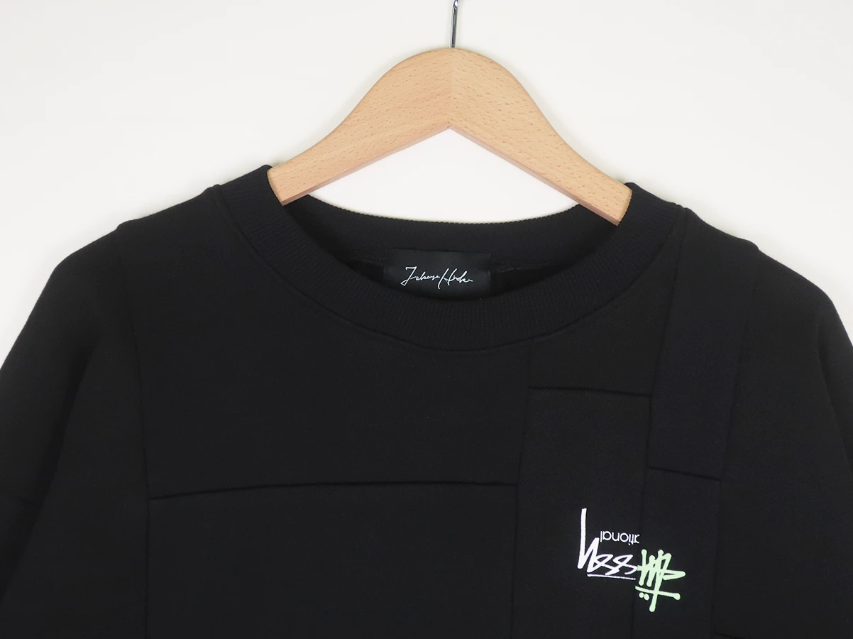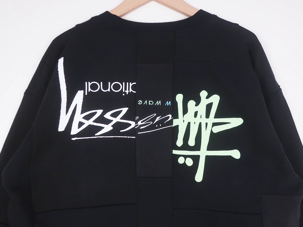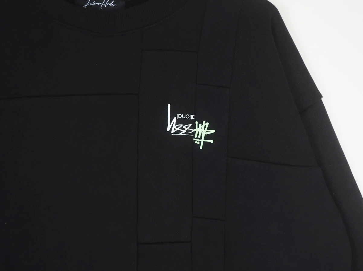 袖にはデザインバランスに合わせ、90s~現行の内タグを選び抜いて縫い付けています。パターンは 80s STUSSY の型をトレースし、現代的なシルエットになるよう改良とグレーディングを施しています。