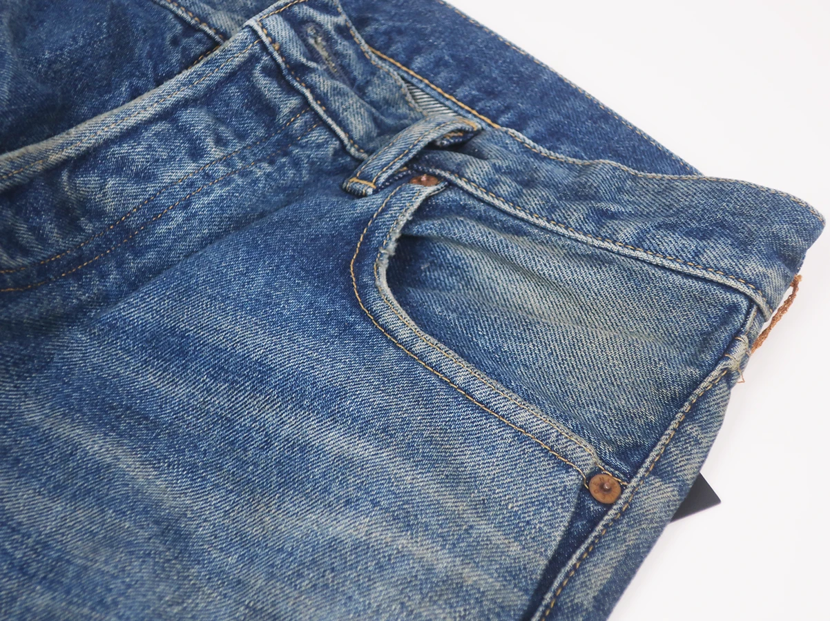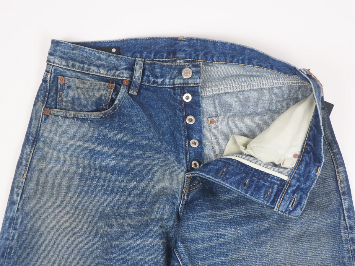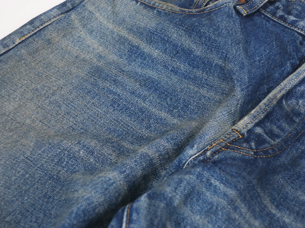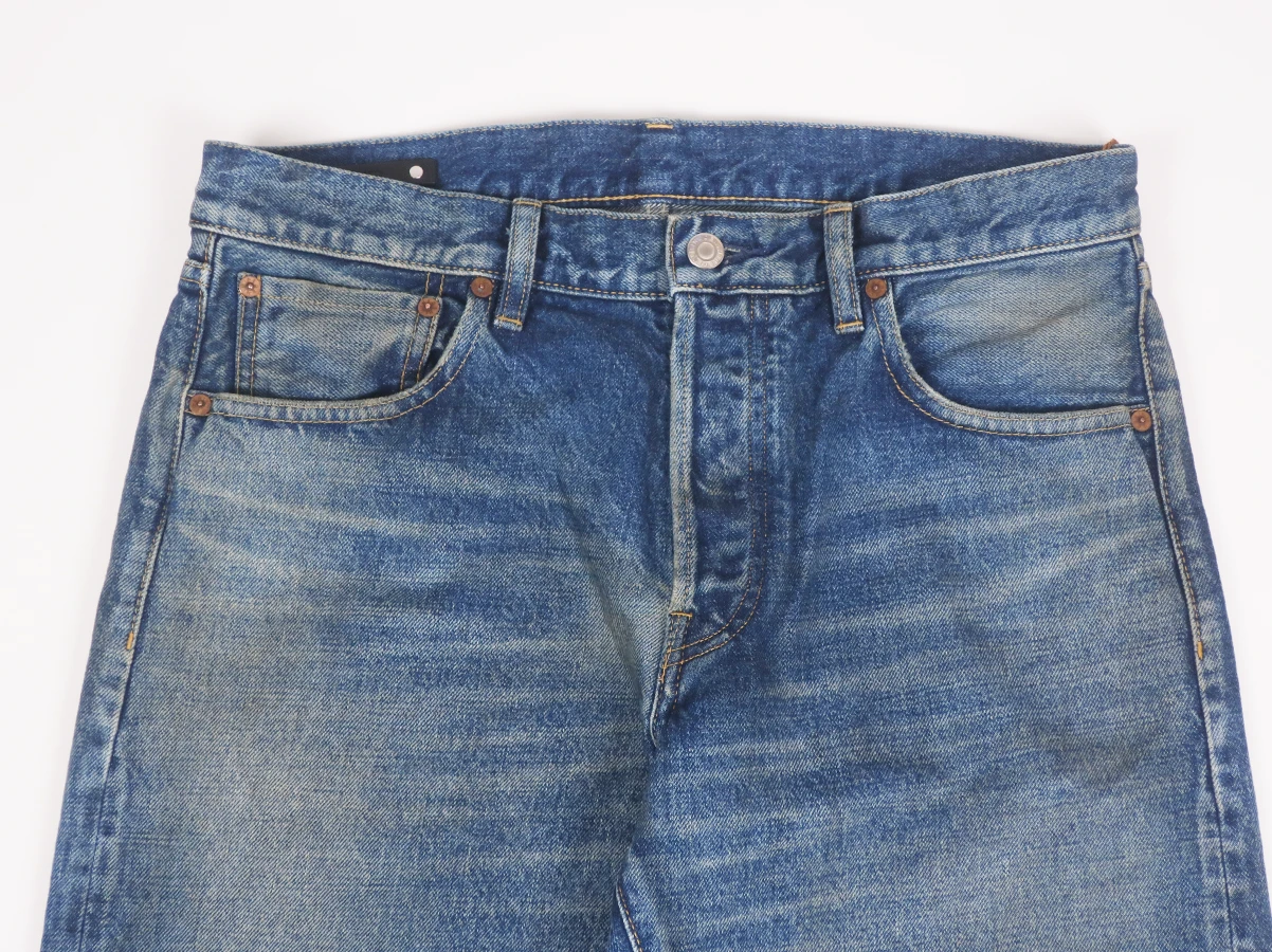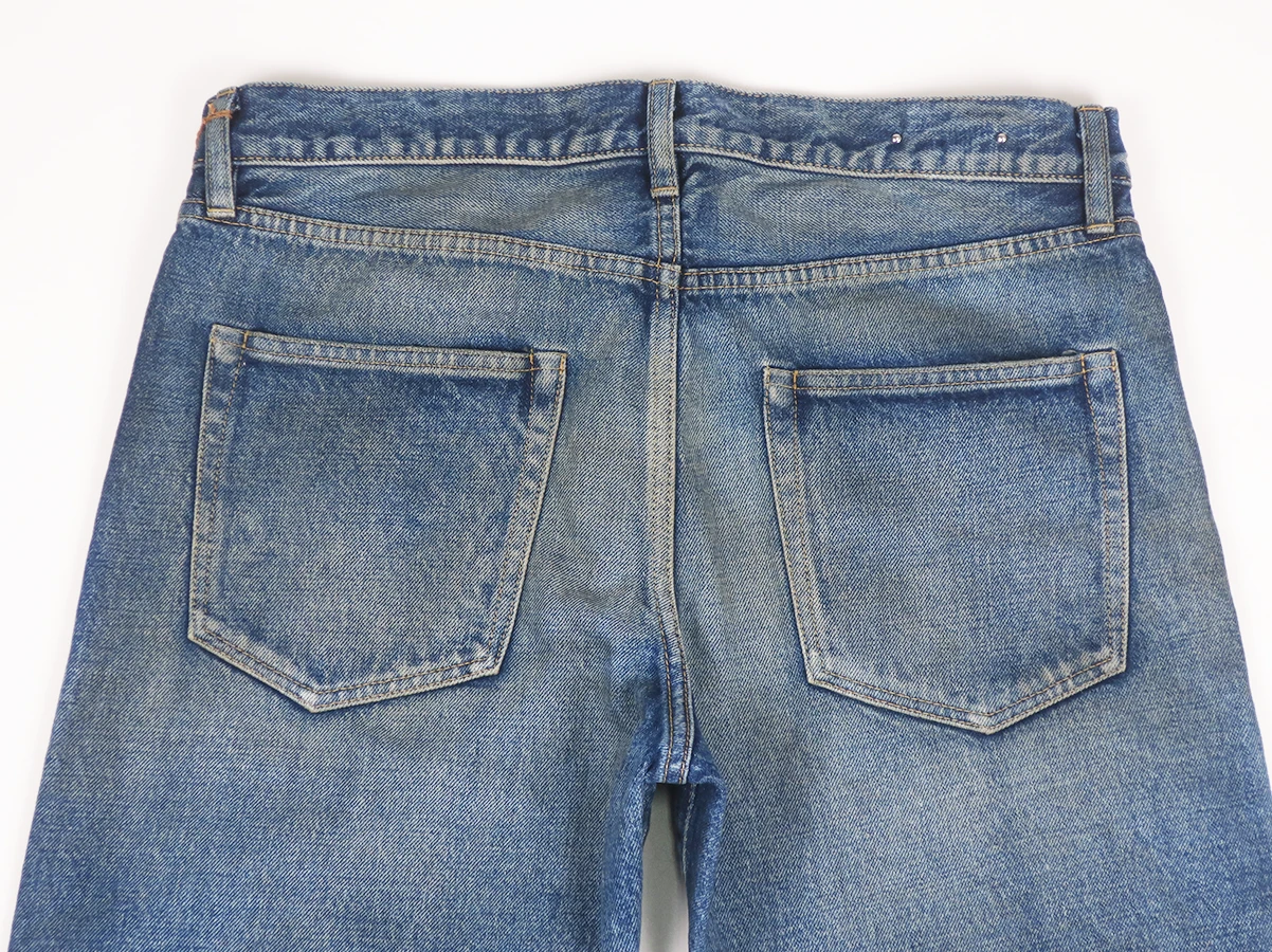 程よく色落ちしたヴィンテージライクな表情が特徴。長年穿き込んだような自然なフェード感やアタリを表現しています。ベーシックな5ポケット仕様で幅広いスタイリングに合わせやすい一本。