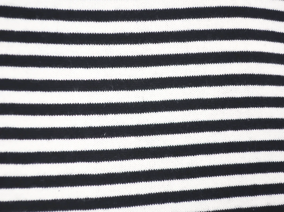 ・ローゲージ先染めボーダー天竺を採用