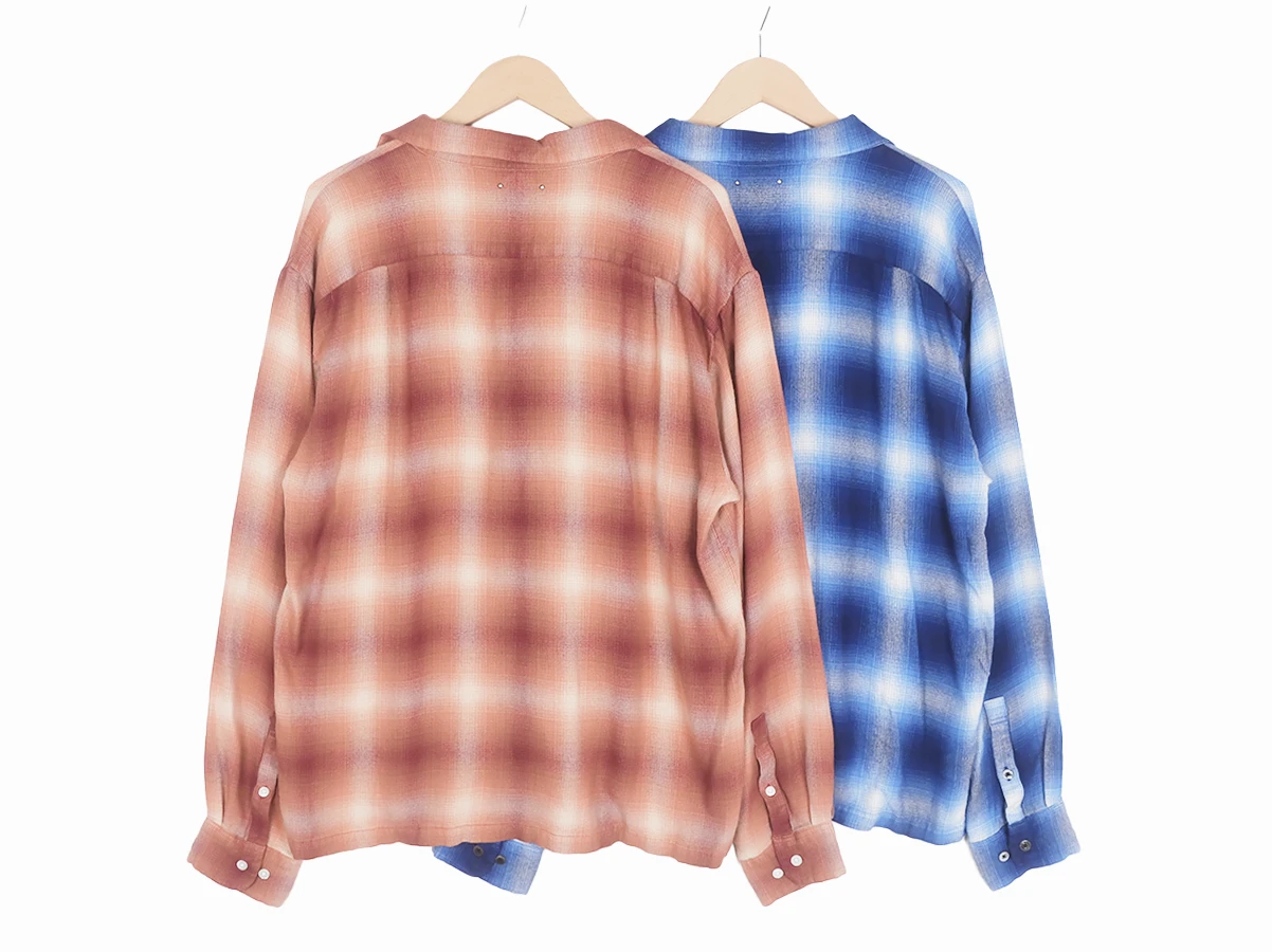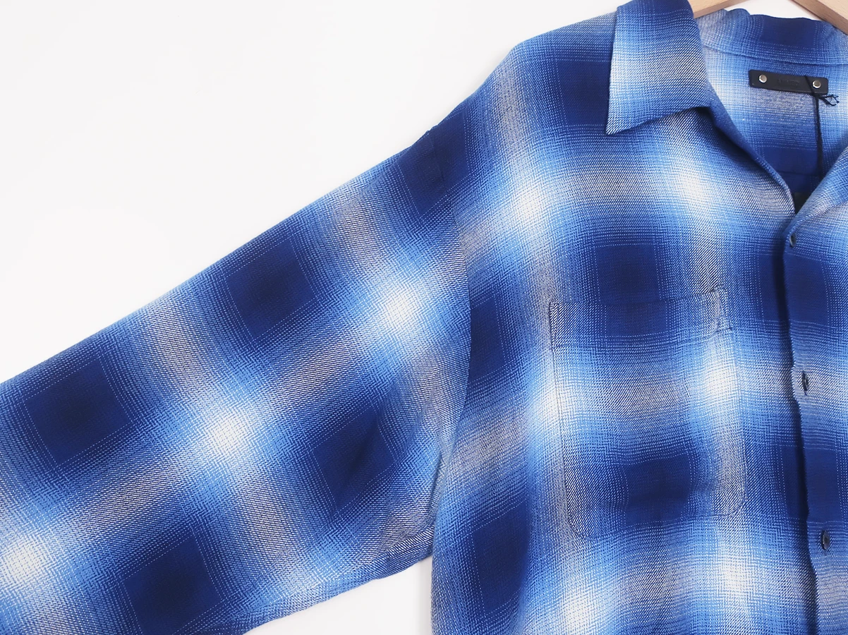 【MINEDENIM マインデニム】R.Flannel Ombre Open Collar SH フランネルシャツ