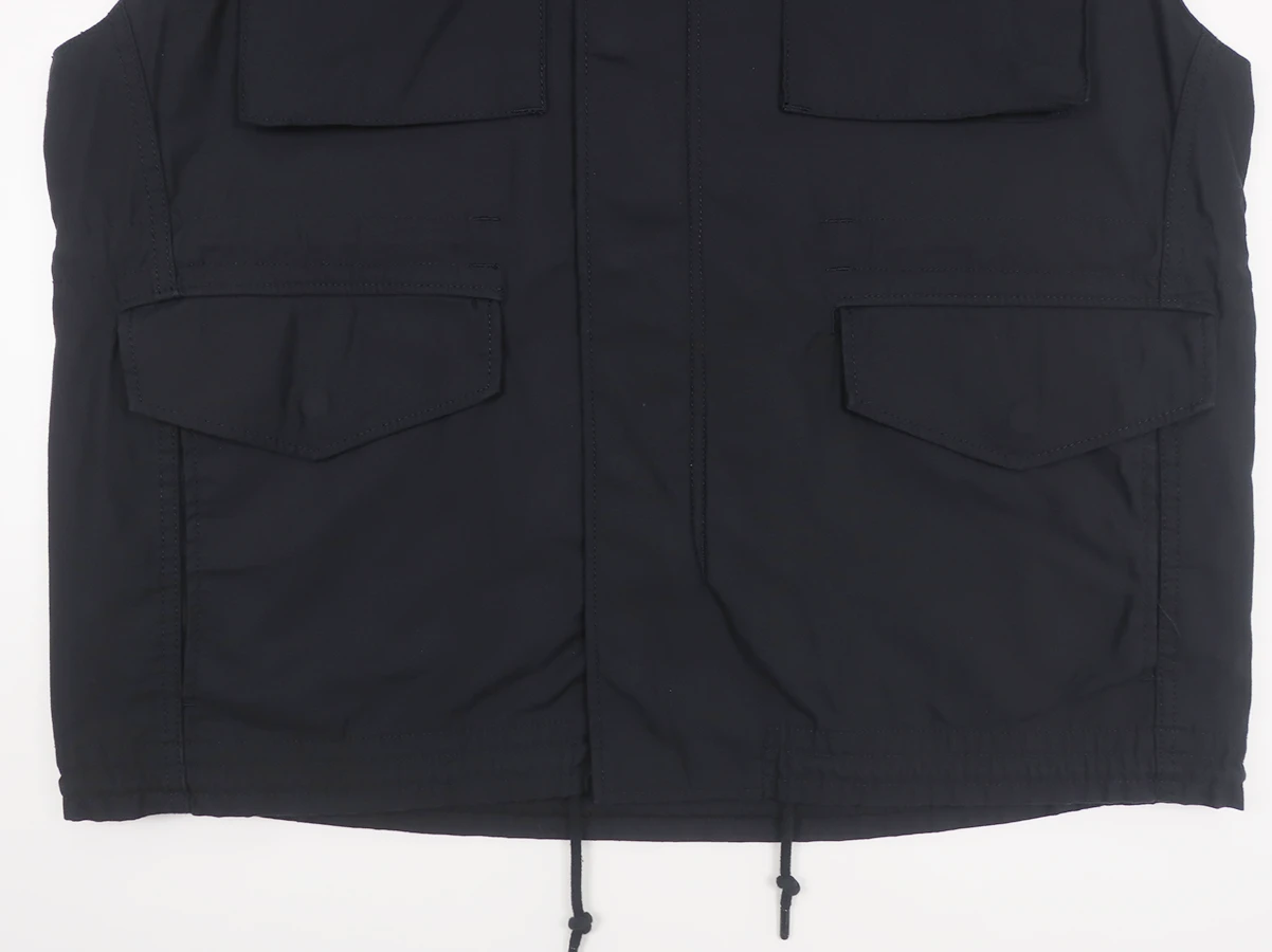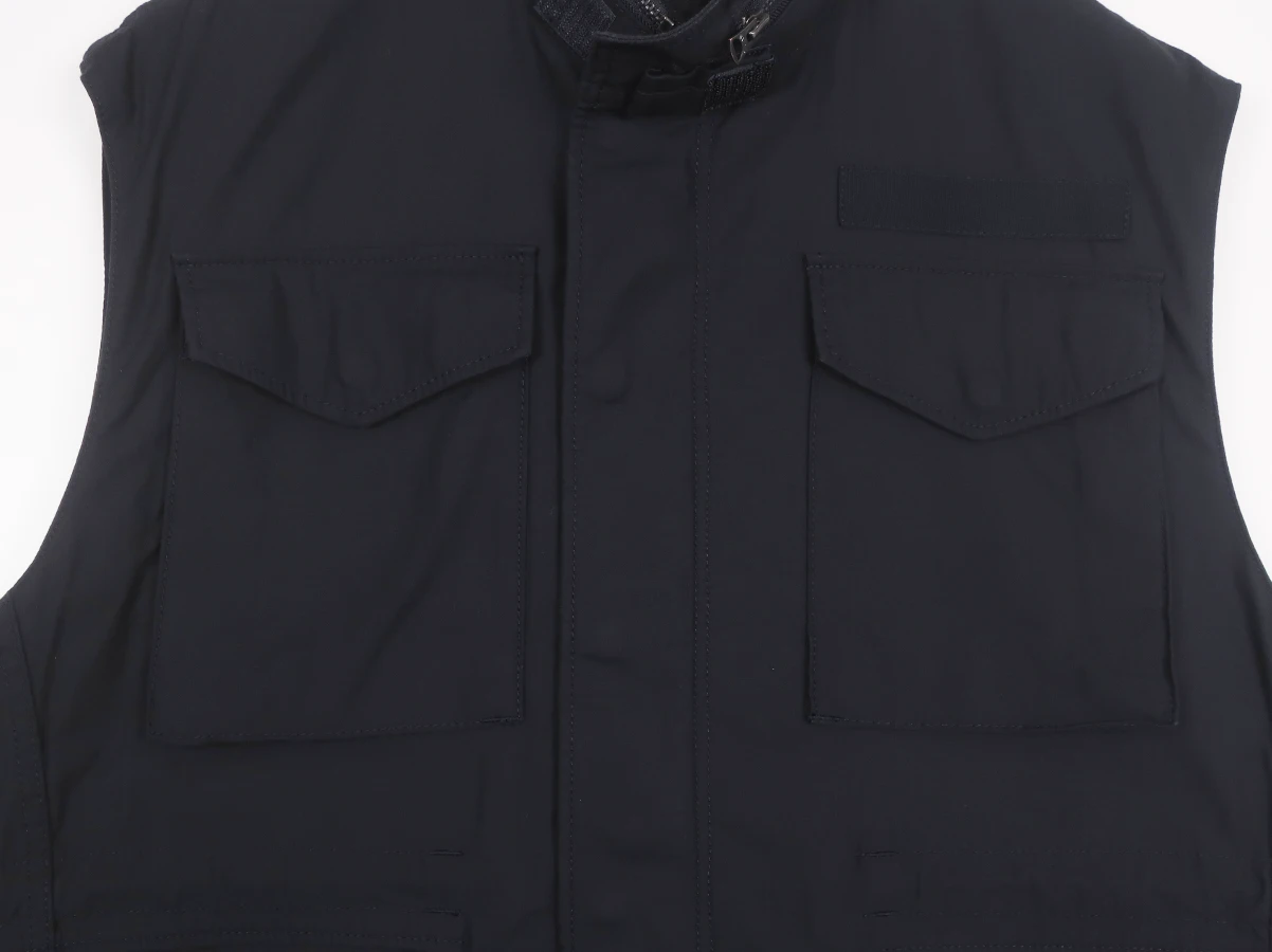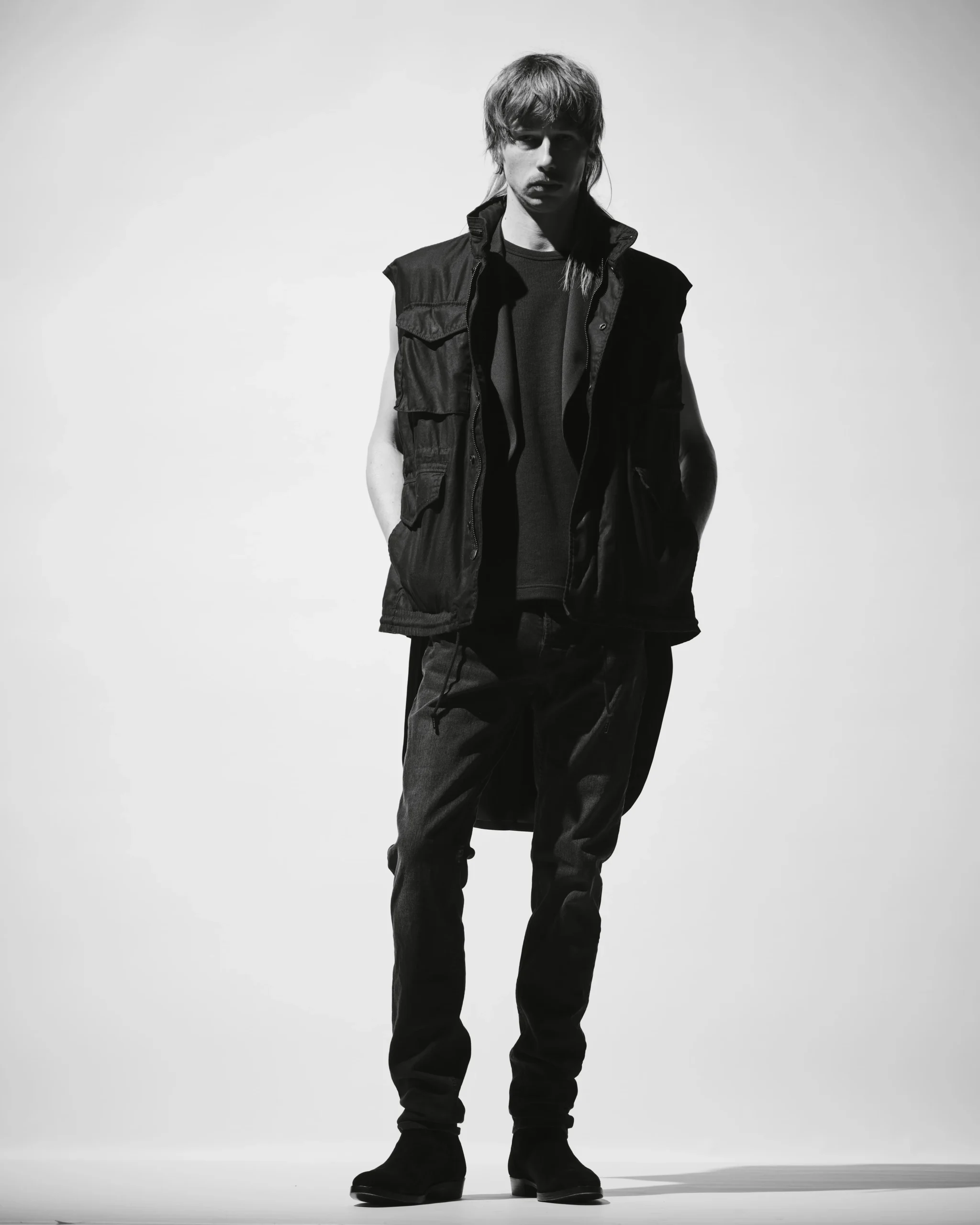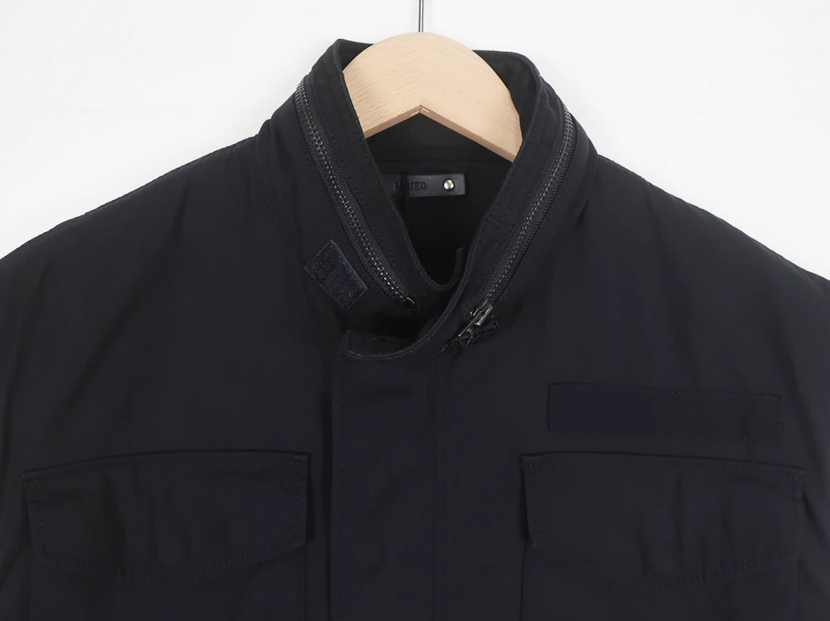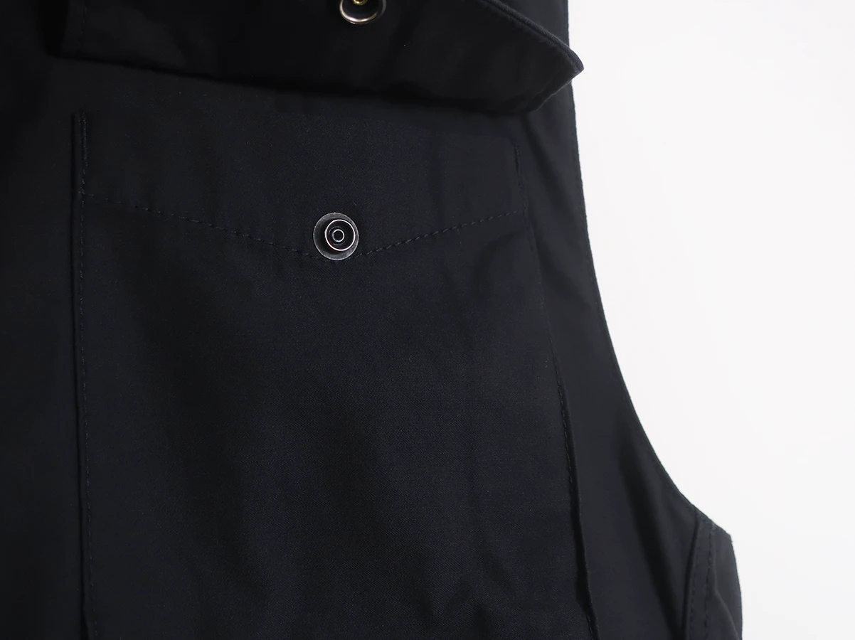 ミリタリーウェアの機能美を、現代的なモードスタイルへと昇華させたスリーブレス・フィールドジャケット。無駄のないシルエットに、MINEDENIMならではの丁寧な縫製とパーツ使いを凝縮した一着。生地本来の風合いを活かしながら、細部に至るまで緻密に作り込まれた仕立てが魅力。