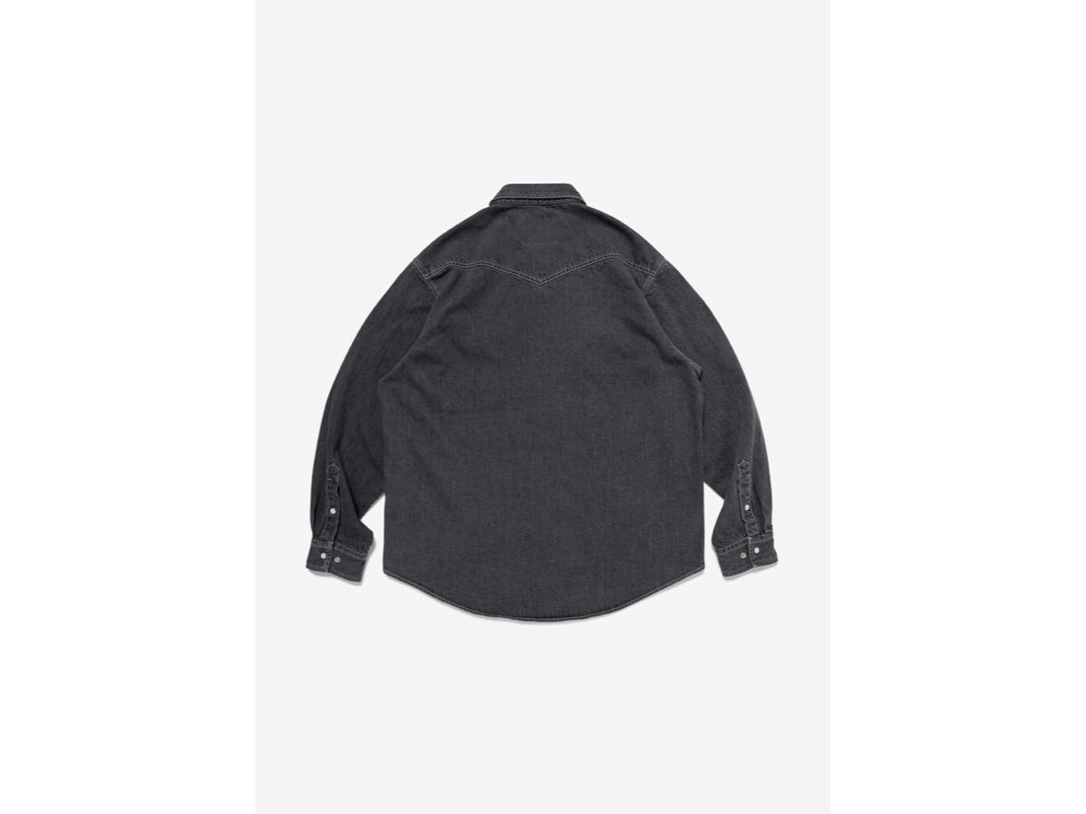 ストーンバイオブリーチ加工を施した9ozムラ糸デニムのウエスタンシャツ。緩やかなラウンドカットで、すっきりとしたレギュラーフィットモデル。左右対称にWを模ったフラップポケットを配置。