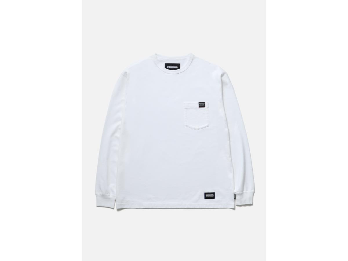 度詰天竺素材を使用した長袖のクルーネックカットソー。パッチポケット口と左裾のブランドタグに千鳥ステッチを施したデザイン。脇接ぎにピスネームを付属。ワンウォッシュ仕上げ。