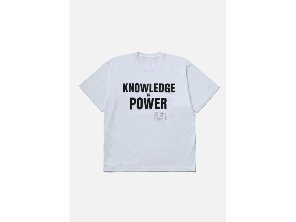 KATHARINE HAMNETTが提言するスローガンをプリントしたショートスリーブTシャツ。スローガンには、知識を人生や社会を変える力とし、進歩のための手段と捉えたメッセージが込められている。コットン天竺のオリジナルボディを使用。特別仕様のブランドタグを配置。