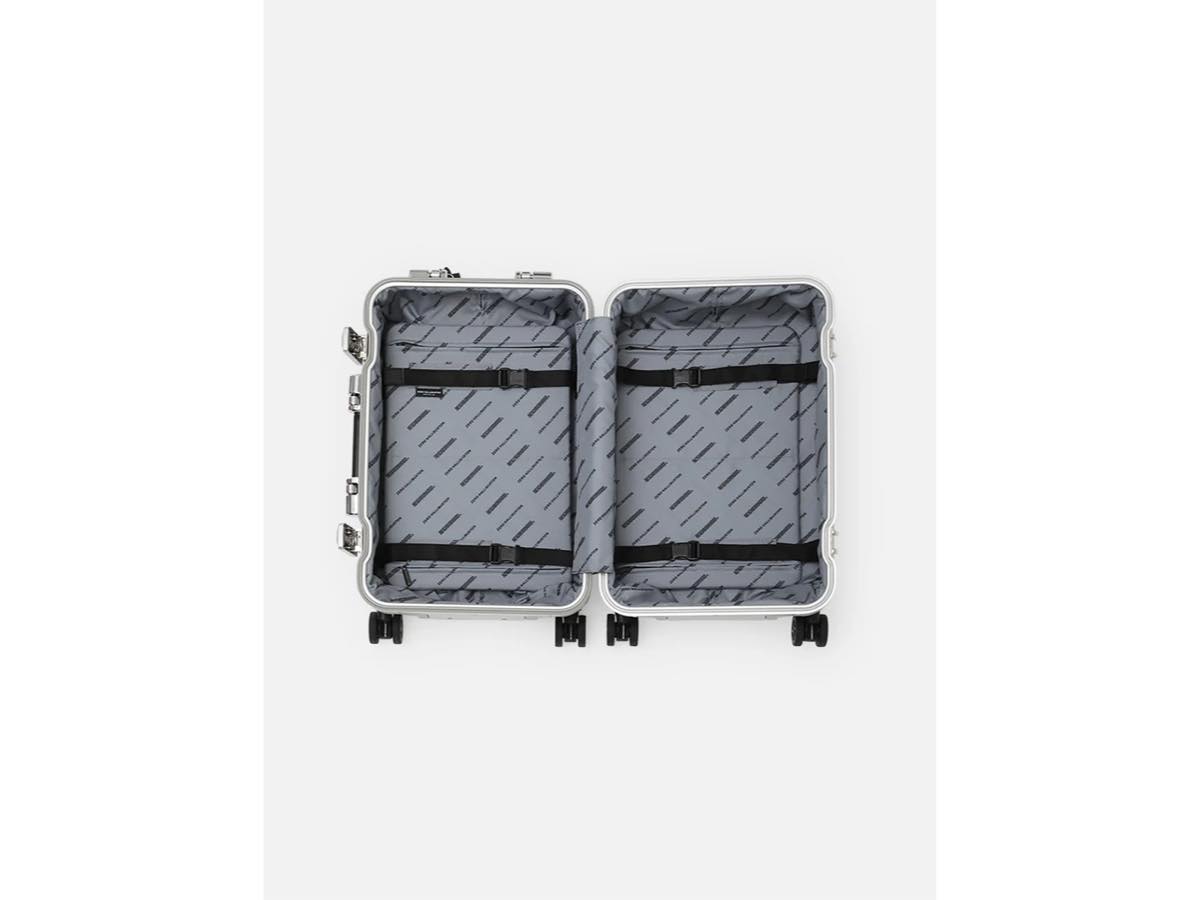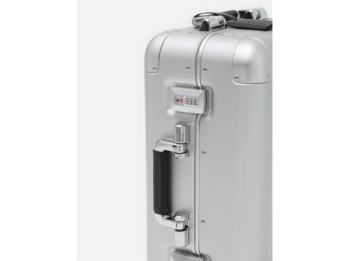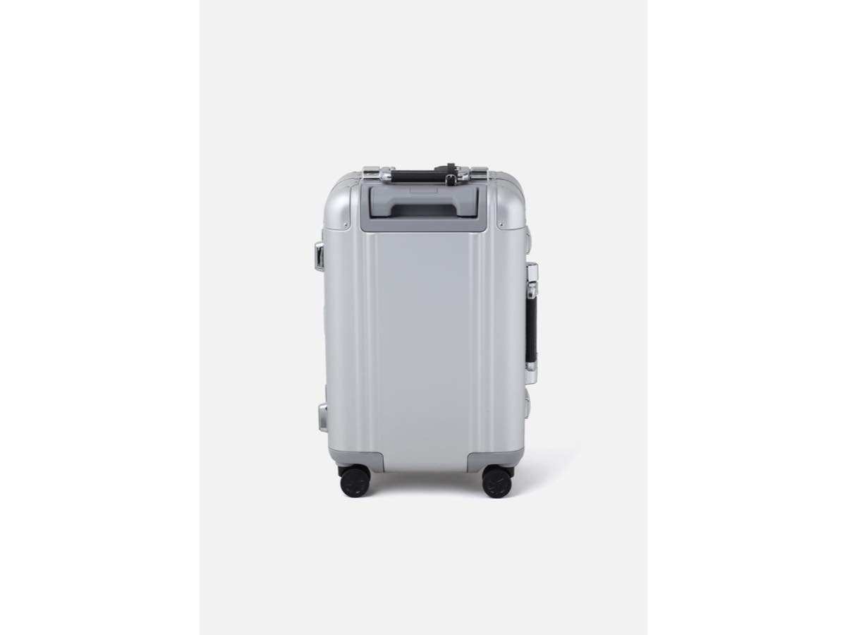 1938年にアメリカで創業した、アルミラゲージに代表されるトータルラゲージブランドZERO HALLIBURTONとのジョイントワークアイテム。1946年に誕生した、ブランドを象徴する伝統的なデザインのダブルリブを最も美しく表現するClassic Aluminum 3.0シリーズをベースに、CIロゴをエンボスで配置したアルミニウム製キャリーケース。ゆっくりと静かに倒れるオイルダンパー内蔵のオートリターンハンドル、ベアリング内蔵の双輪キャスター、TSダイヤルロック(Travel Sentry®認可ロック)、内装に荷物の偏りを防ぐコンプレッション機能付きの仕様。国際線/国内線100席以上の航空機に対応した、2~3日の旅行などに最適なサイズ。重量5kg。容量33L。