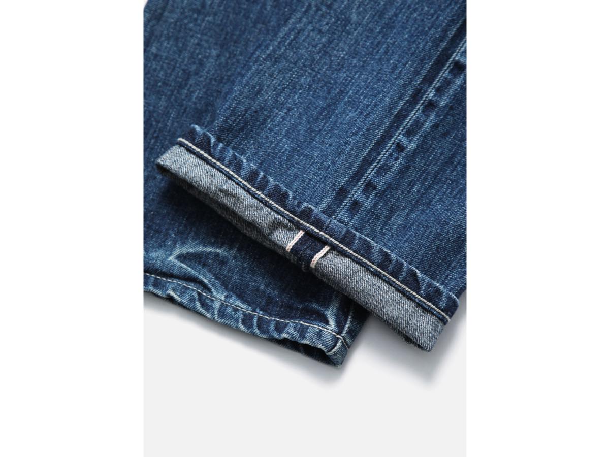 12oz.オリジナルデニムをベースにウォッシュド加工を施したデニムパンツ。セルヴィッヂデニム生地からボタン、リベットといったパーツに至るまで全てオリジナルで製作。フロントジッパーフライに忍ばせたシグネチャーテープやヒップポケットの”N”ステッチ、レザーパッチ等のディティール。カスタムクラフテッドアイテム専用のサイズネームを付属。腰回りに余裕を持たせた細身のテーパードシルエット。