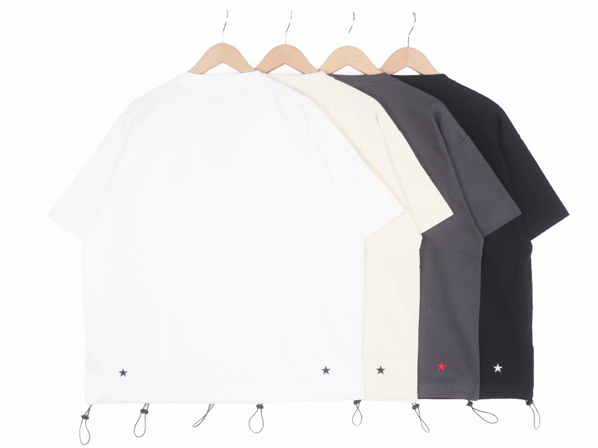 裾にドローコードを備えた半袖Tシャツ。コットン100%のしっかりとした生地を使用し、ゆとりのあるシルエットに仕上げています。