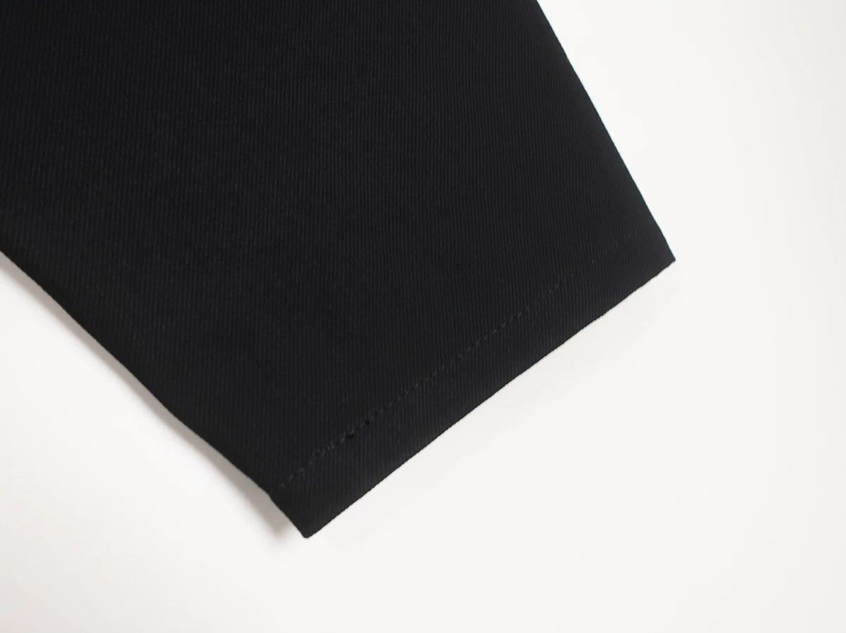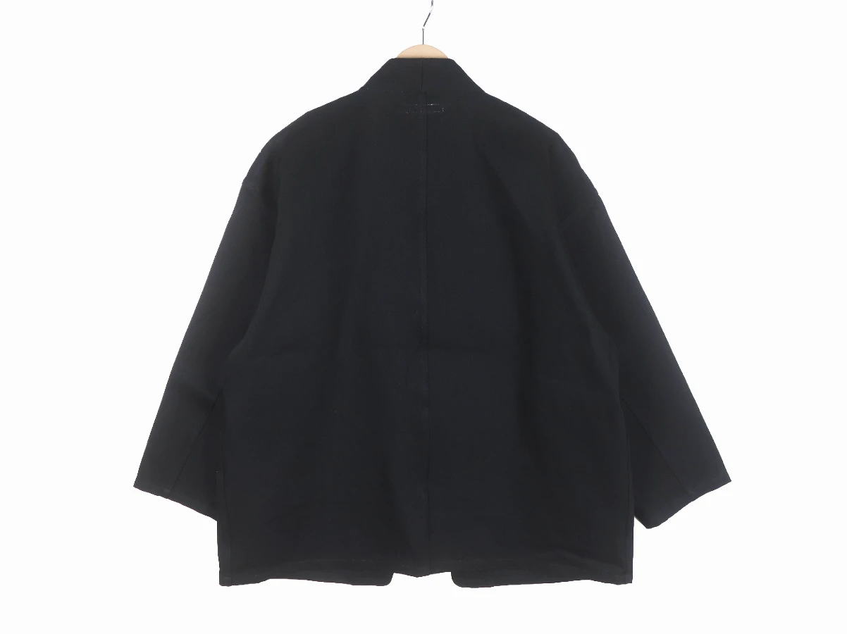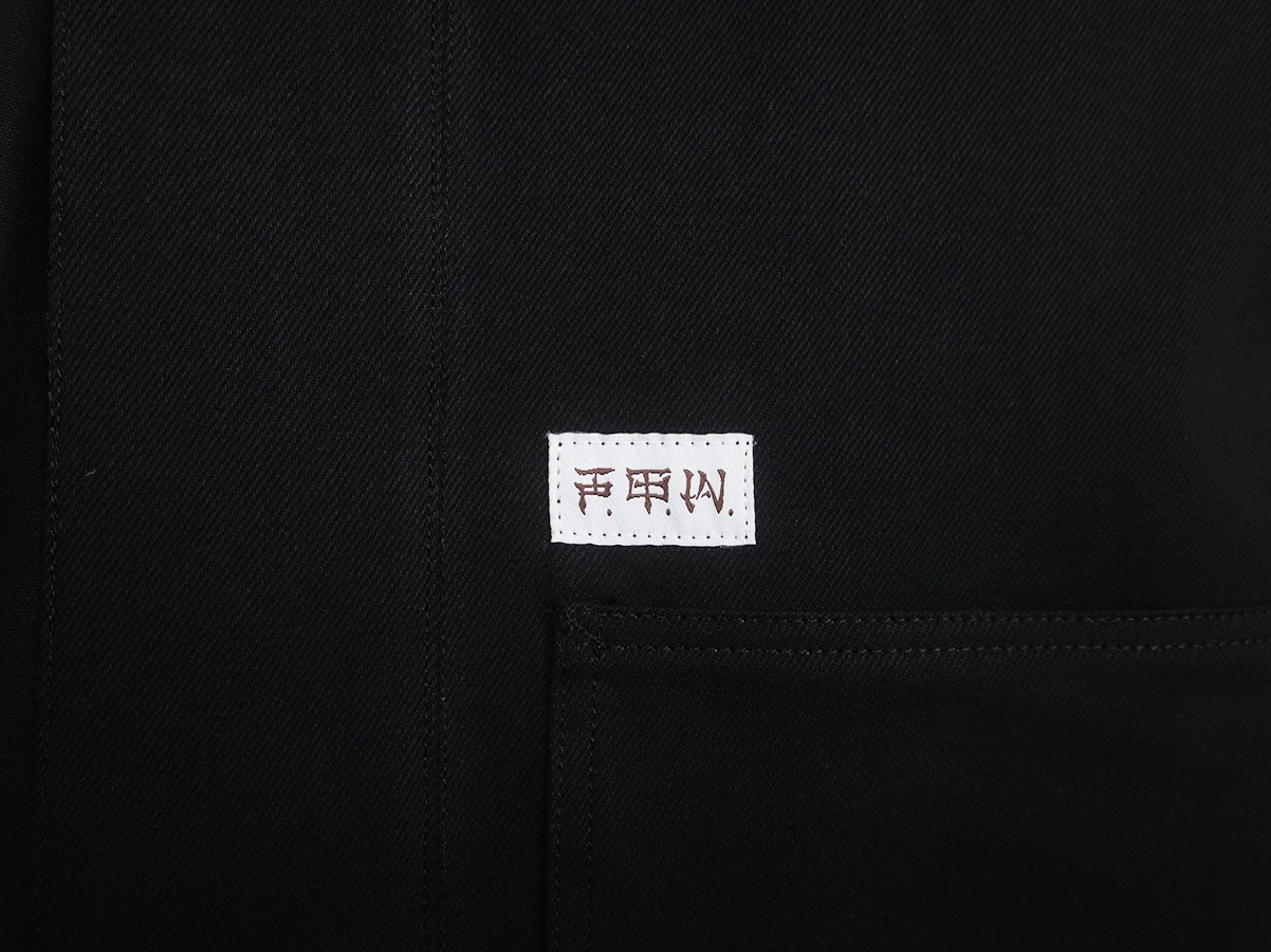 経年劣化が楽しめるリジッドブラックデニム生地を使用し、カバーオールのステッチワーク使用の野良着シャツ。