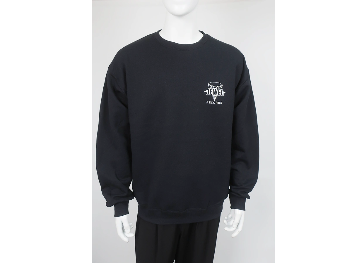フロントにのグラフィックを配したクルーネックスウェット。胸元に「JEWEL RECORDS」ロゴをプリント。