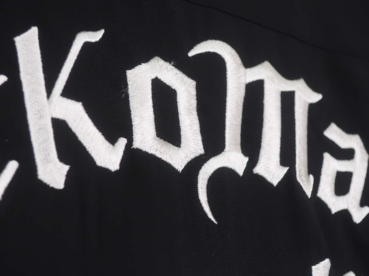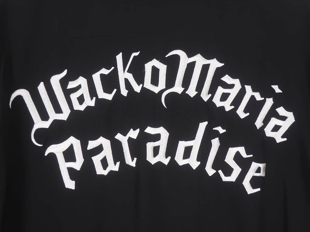 フロントは左胸にロゴ刺繍を配置したシンプルなデザイン。背面にはWacko Maria Paradiseのグラフィックを大きくレイアウトし、後ろ姿でもしっかり存在感を演出します。