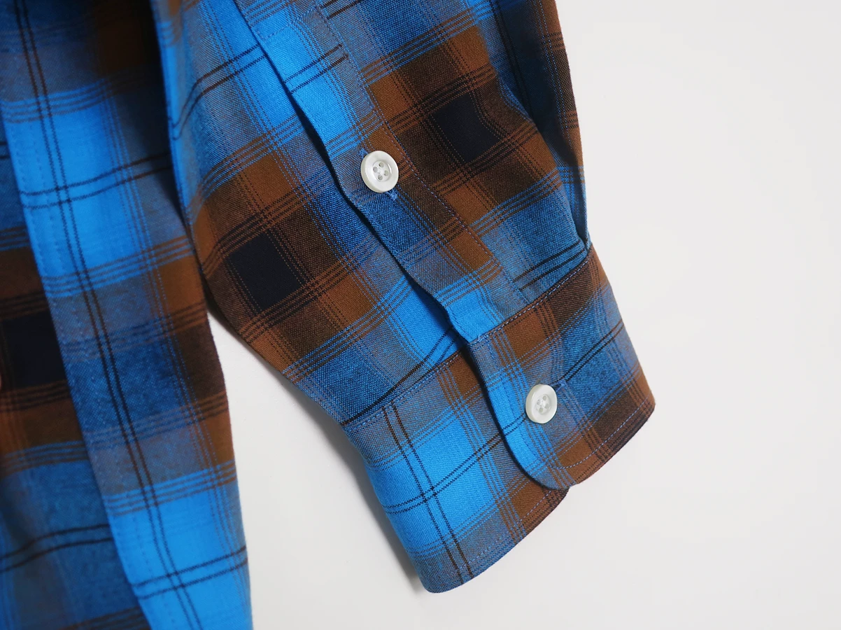 ブランドのシグネチャーともいえるオンブレチェックを落とし込んだロングスリーブのオープンカラーシャツ。素材はレーヨン。とろみのある滑らかな質感と自然なドレープが特徴で、柔らかく揺れる表情が色気を演出。軽やかな着心地で春から秋まで長く活躍する一枚。