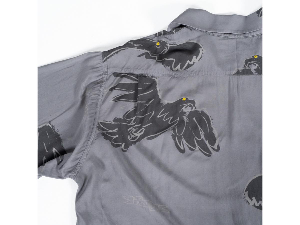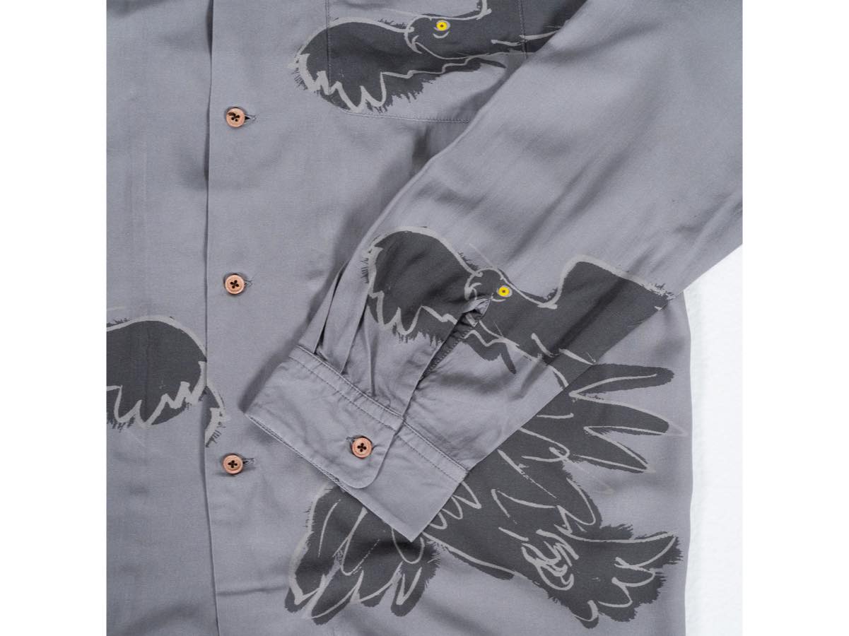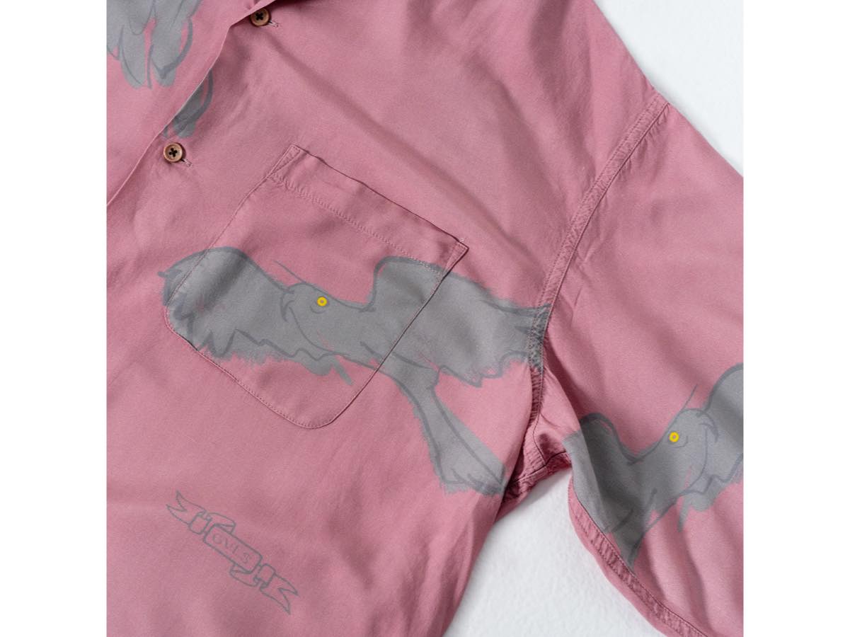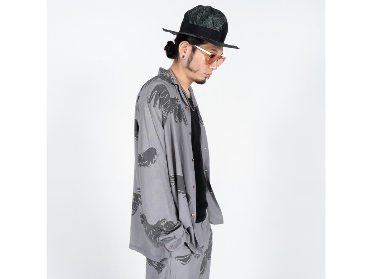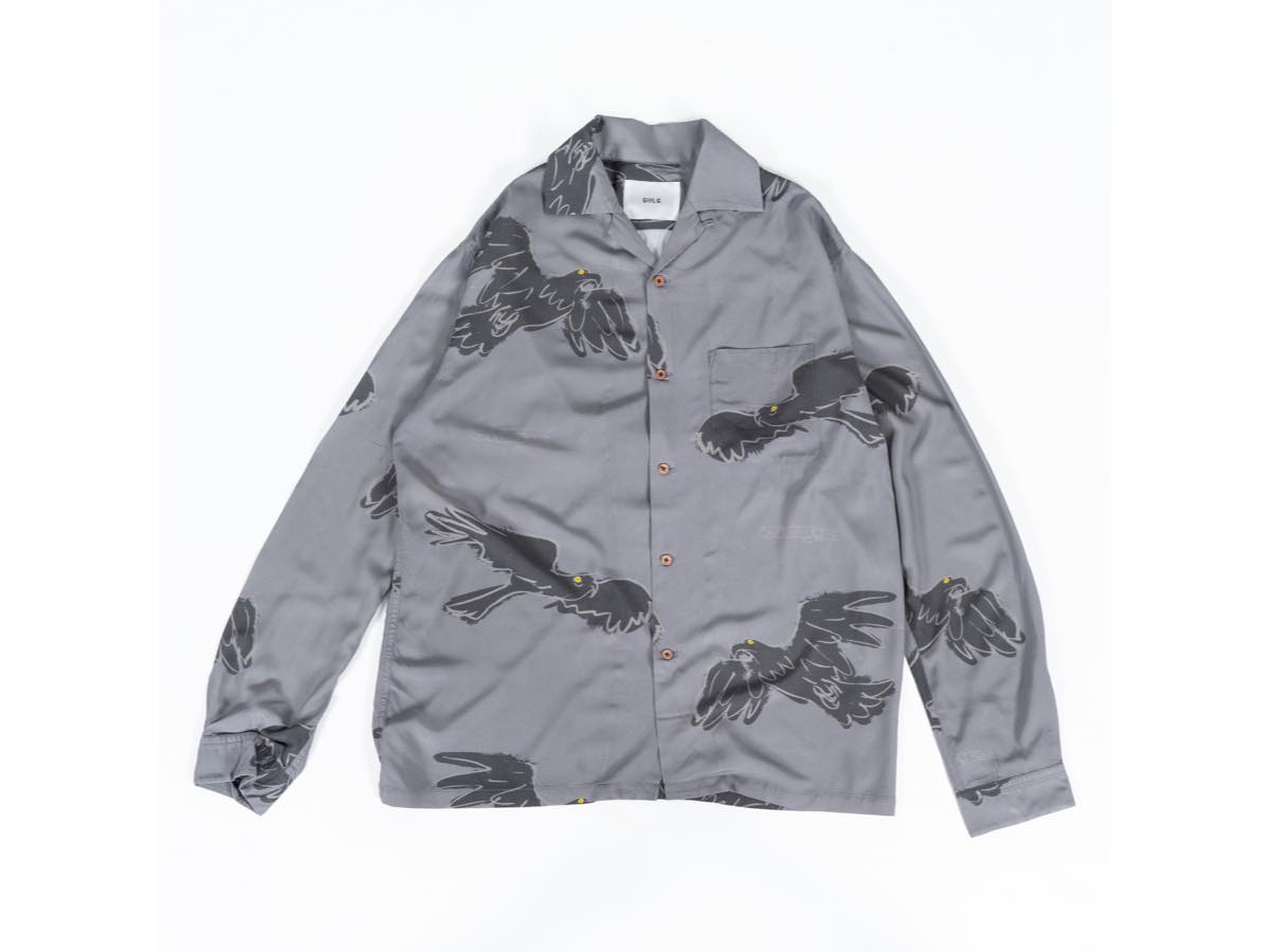 “今季も独特な画風を持つ中村達也氏手描きのイラストレーションがデザインされたオリジナルの生地のGVLS夏のイメージとして定番化されているアロハシャツ。 ”鳥” のイラストの その自在に飛び回る姿、空気をそのまま纏えるよう、大きめの柄・色・素材の“軽やかさ”に徹底的にこだわったアイテムとなっています。 こちらは長袖シャツver.”
